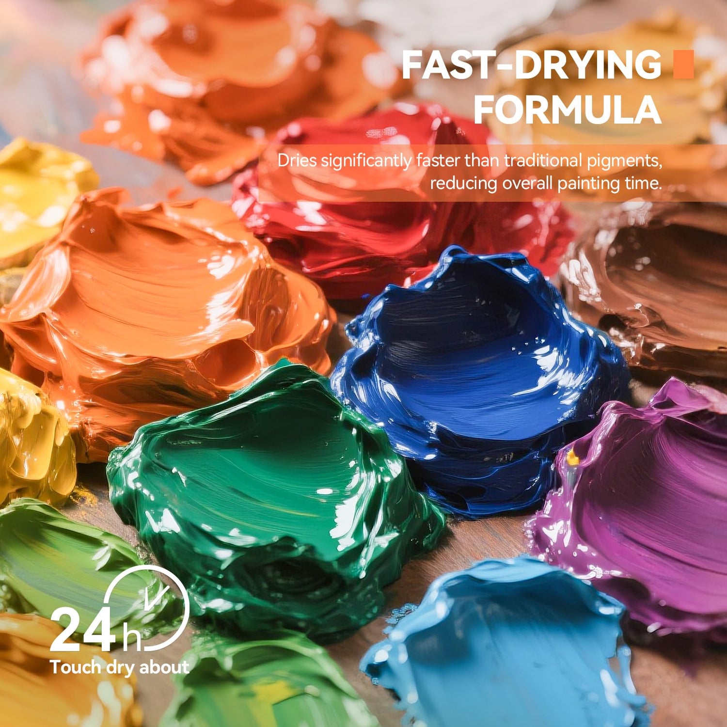 - Fast Drying Time - It is serviceable to cover large areas of canvas quickly and start to apply thicker layers of paint fast without disturbing any wash, underpainting, or sketch underneath. Allowing you to quickly apply new colors, it is more convenient and quicker than traditional oil paints.