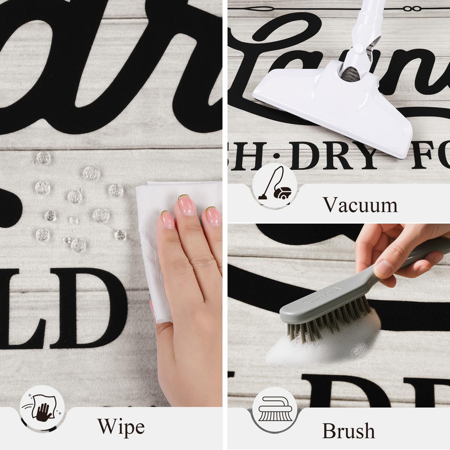 - Waterproof Kitchen Runner Rugs: Constructed with waterproof stain resistant surface, this rug for laundry room is very easy to wipe up if you spilled something on it, easy to sweep or vacuum clean. Maximum comfort with minimum effort