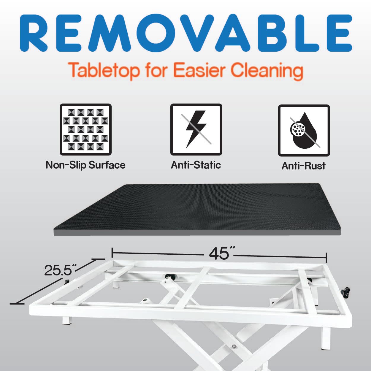 - FUNCTIONAL AND CONVENIENT - Features like adjustable arms with restraint loops ensure comfort and safety for pets and groomers. The non-slip tabletop is easy to clean, making grooming sessions more convenient.