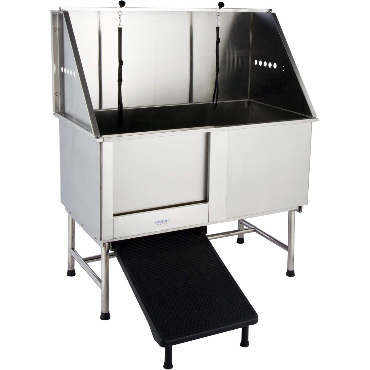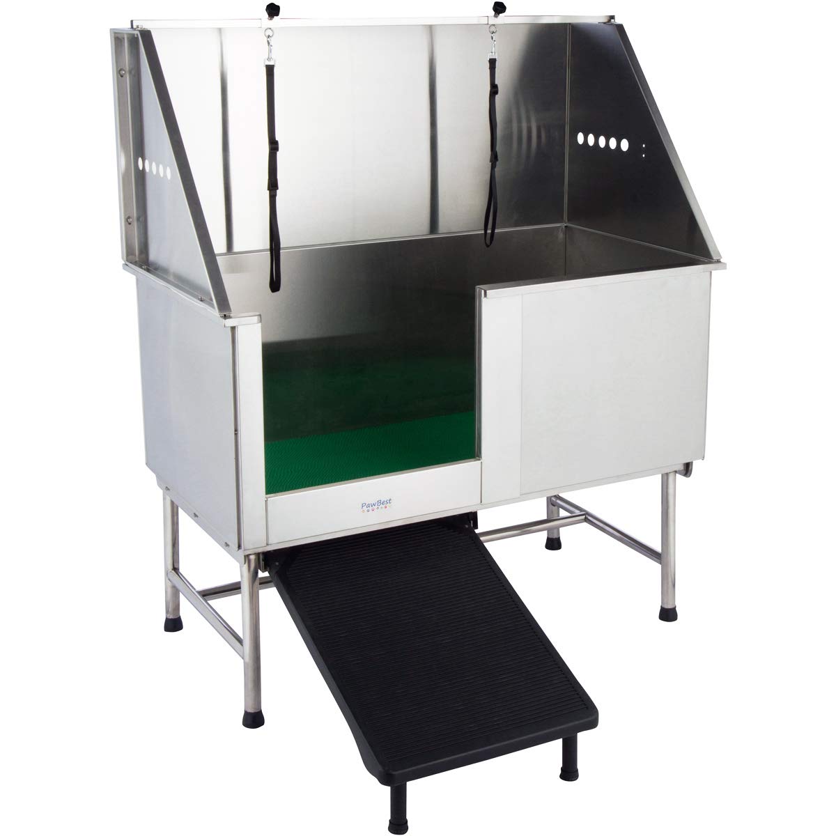 PawBest Stainless Steel Dog Grooming Bath Tub with Ramp, Faucet, Hoses and Loops (50" Bathtub)