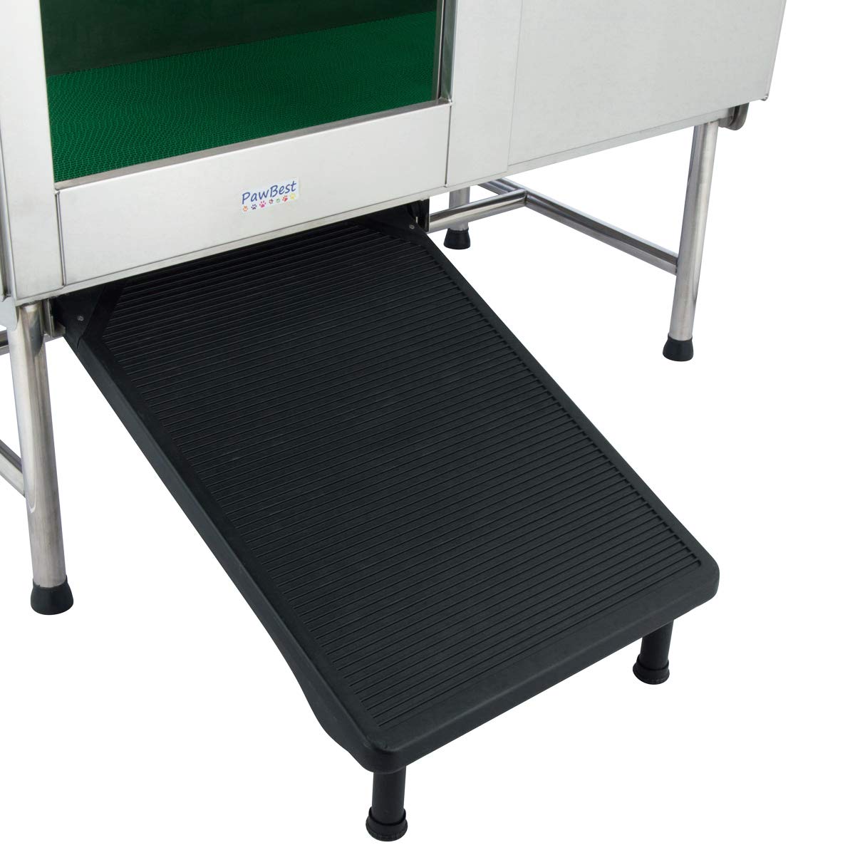 Details: Please enjoy our Paw Best Grooming Bath Tub, it will make bathing more fun and convenient. Due to the amount of bathing time you spend daily, this tub will not only become handy but also be your backsaver. For better strength and durability, the tub is made of rust resistant 16-gauge 304 type stainless-steel construction. The tub basin is fully welded in one piece to ensure against leaks. The base frame is also fully welded and equipped with levelers for uneven floor. The sliding door is perfect to save space. You can simply slide the door open or closed. Tub comes equipped with a green rubber mat to prevent slippage and a plastic ramp with non-slip texture. Back and side splashes prevent water spill around and they are removable, giving you the option of a 360-degree bathing experience. This tub gives you the options to use either 4,6,8 inches wall-mount faucet. It is a perfect dog grooming bath tub for both home and commercial use.