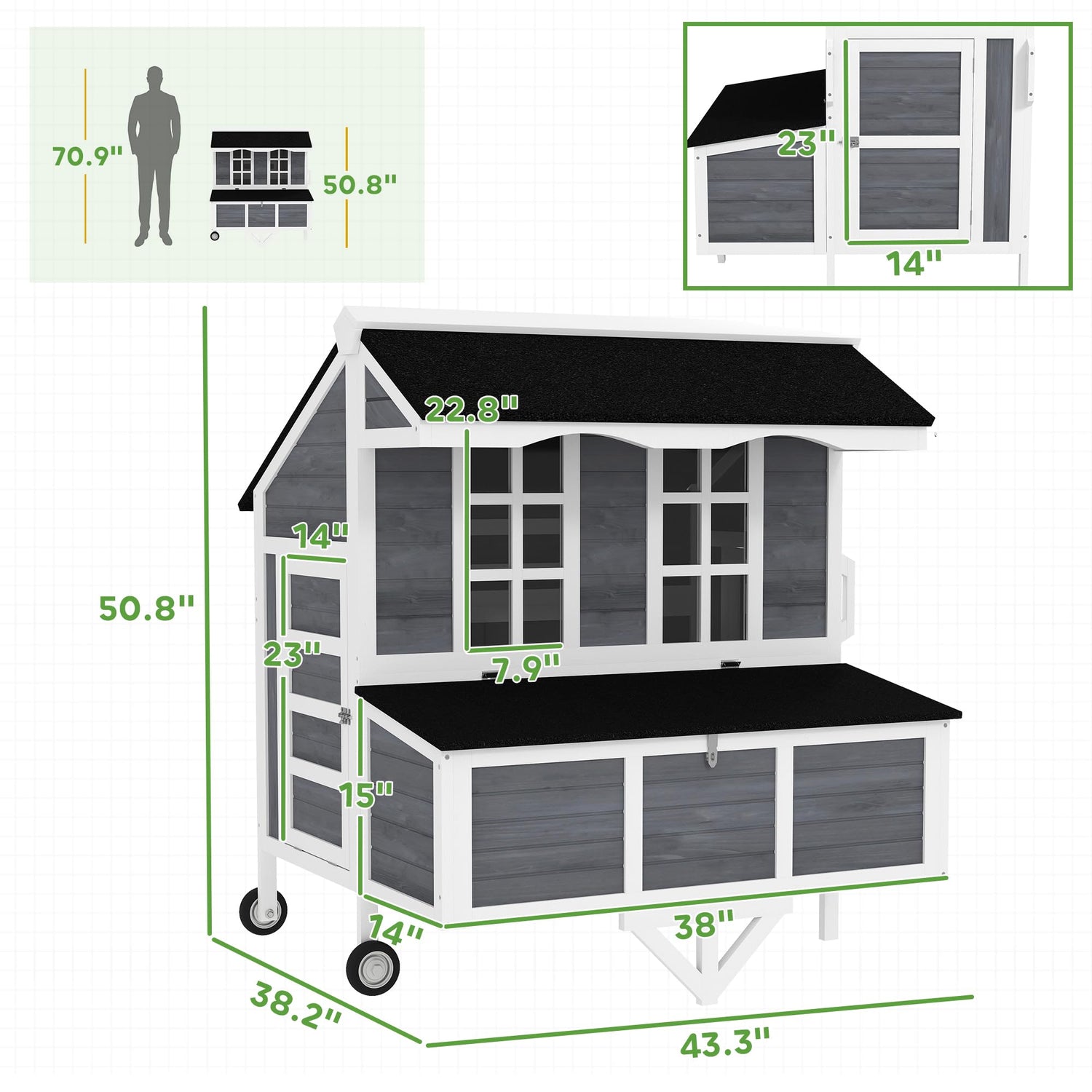 - Robust Construction: Crafted from fir wood and finished with weather-resistant paint and an asphalt roof, this hen house is built to withstand the elements
