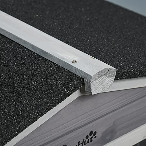 PawHut 62" Rabbit Hutch, Wooden Bunny Hutch, Guinea Pig Cage, Small Animal Enclosure with Wheels, Run Area, Removable Tray, Asphalt Roof, Lockable Doors and Ramp, Gray
