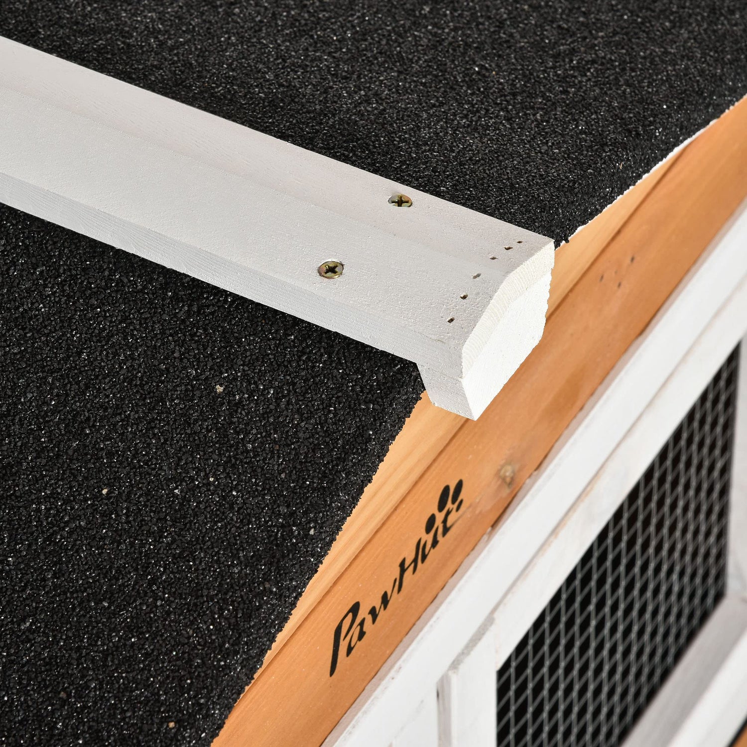 PawHut 62" Rabbit Hutch, Wooden Bunny Hutch, Guinea Pig Cage, Small Animal Enclosure with Wheels, Run Area, Removable Tray, Asphalt Roof, Lockable Doors and Ramp, Nature Wood
