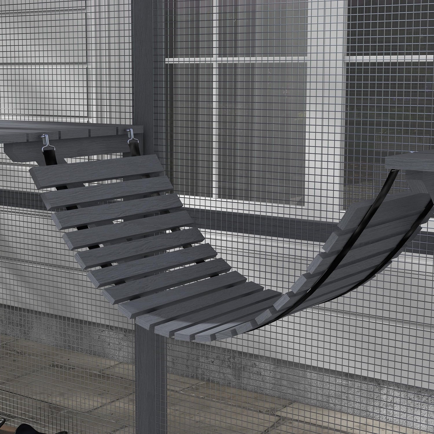 PawHut 9.2' Catio, Outdoor Cat Enclosure House, Wooden Feral Cat Shelter with Condos, UV and Waterproof Canopy, Suspension Bridges, Platforms & Multiple Doors for 3-6 Cats, Gray