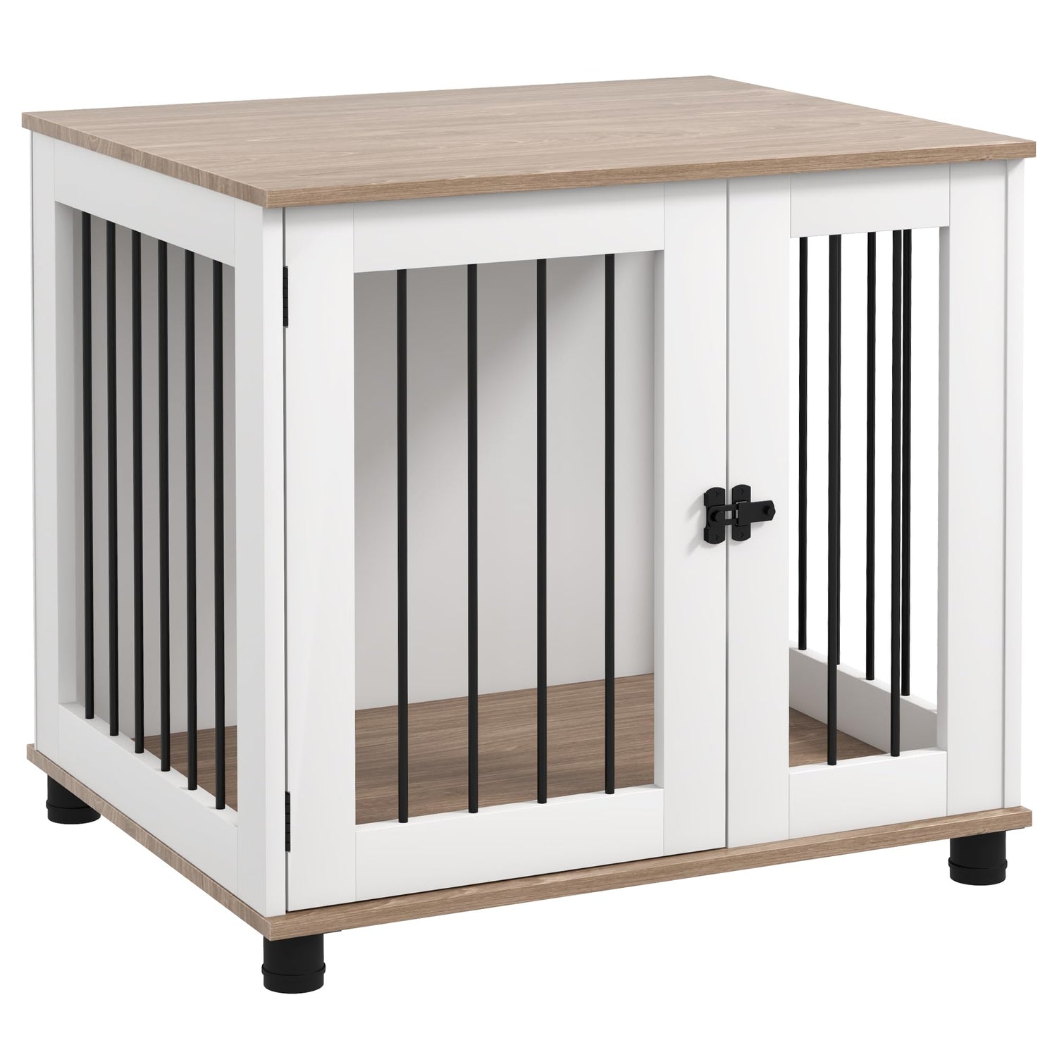 PawHut Dog Crate Furniture, Side Table Indoor Dog Kennel, End Table with Lockable Door for Small and Medium Dogs, Walnut Brown
