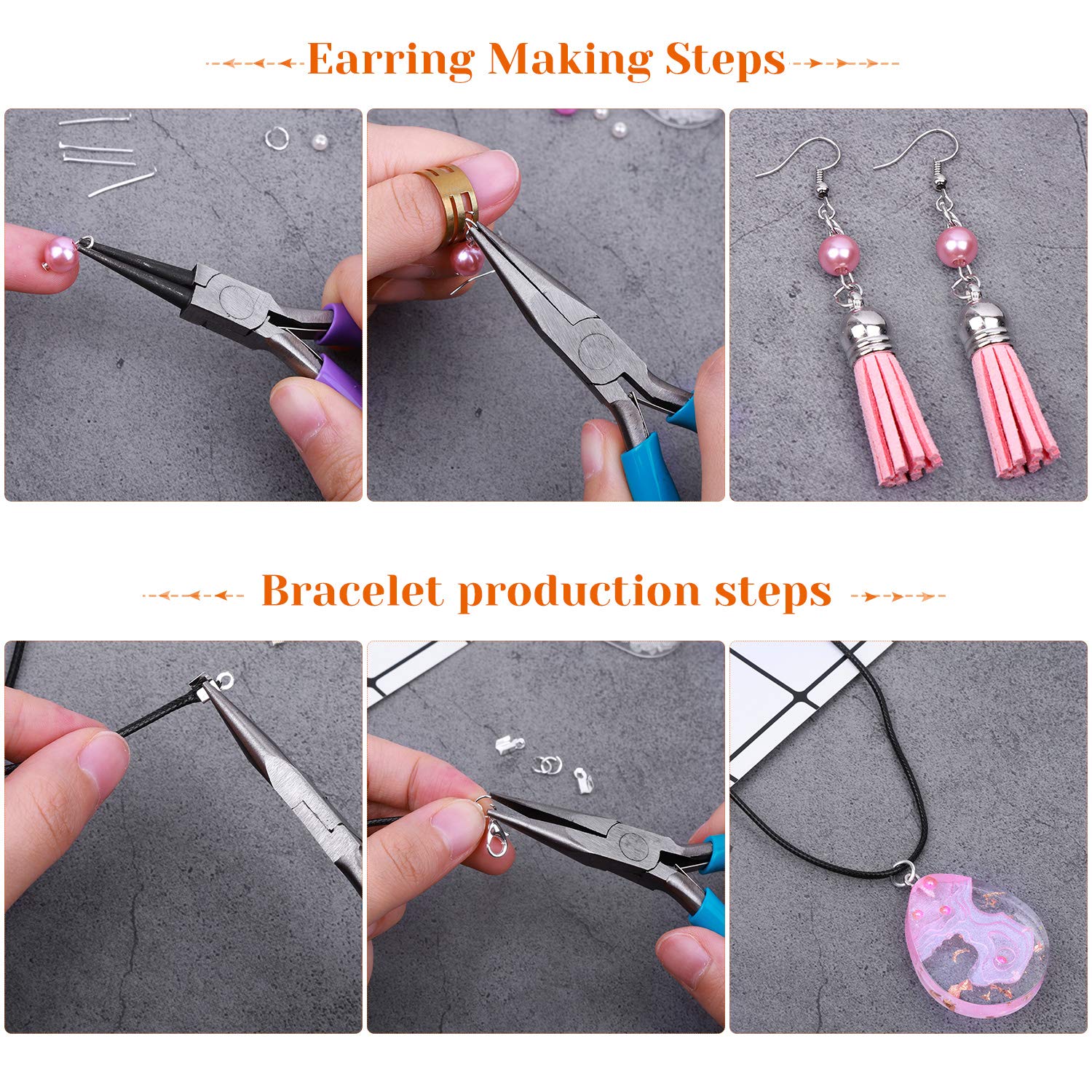 - SUPERIOR BEADING PLIERS - The jewelry repair tool kit has 3 necessary jewelry pliers: round nose plier, wire cutting plier and chain nose plier. Each plier has double leaf spring and non-slip handles which make them effective and safe for use