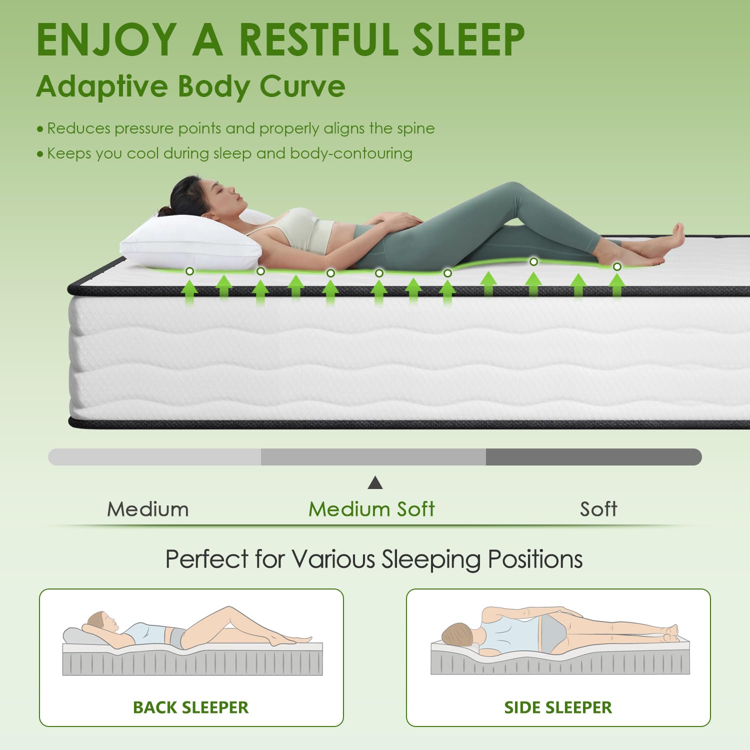 - Provide Sigh-Quality Sleep: the mattress surface is made of breathable and comfortable cotton and skin-friendly knitted fabric, and the fire protection layer is made of flame retardant non-woven fabric without glass fiber, which provides a gentle touch for your skin and keeps the mattress surface at an ideal sleep temperature