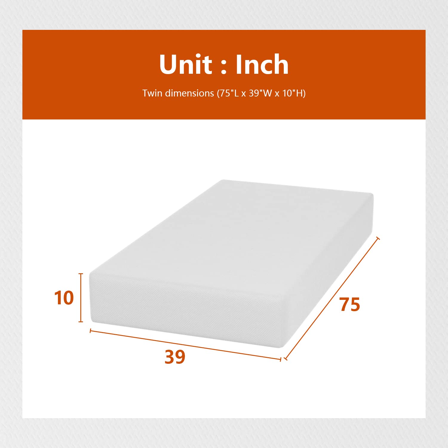 PayLessHere 10 Inch Twin Mattress Base Foam Mattress CertiPUR-US Certified,Removable Soft Cover,Twin mattresses for Bed Frame, Bunk Bed, Trundle, Daybed,White,Fiberglass Free