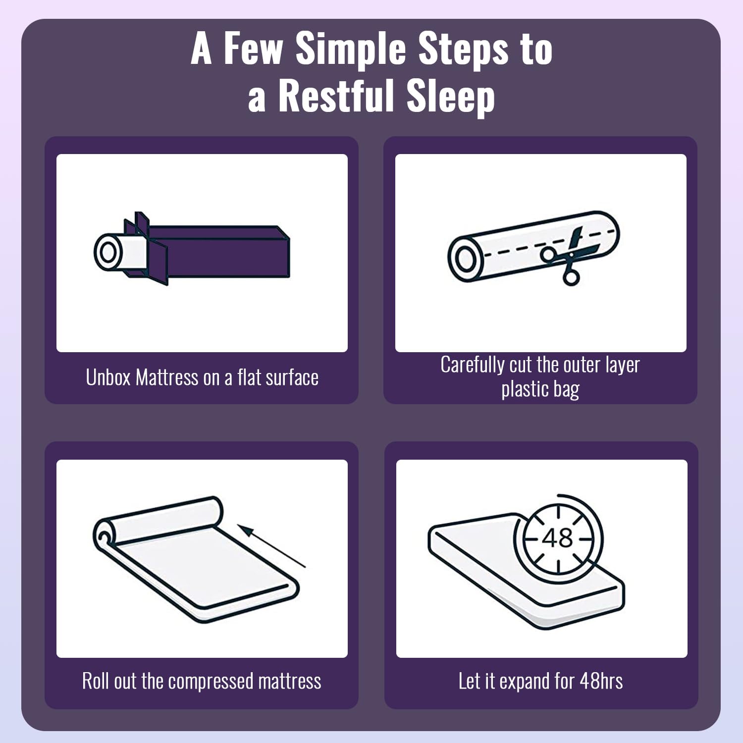 - 【Easy to install and use】: Our bamboo charcoal memory cotton mattresses are packaged in roll wrap. After opening the mattress, please allow 24-72 hours for the mattress to return to its original state. Any memory foam will expand faster in a warm room. In cold temperatures, the mattress may take longer to recover from compression. The expansion time of a mattress may vary depending on the surrounding environment.