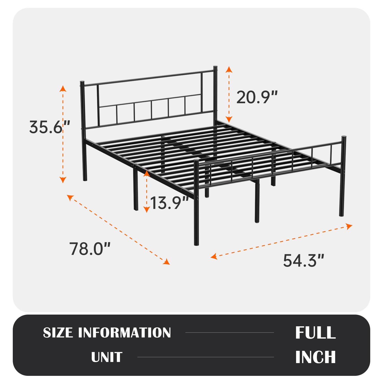 PayLessHere 14 Inch High Metal Platform Bed Frame with Headboard Maximum Storage Space Under The Heavy Duty Bed Frame No Box Spring Needed Noise-Free Easy Assembly (Full)