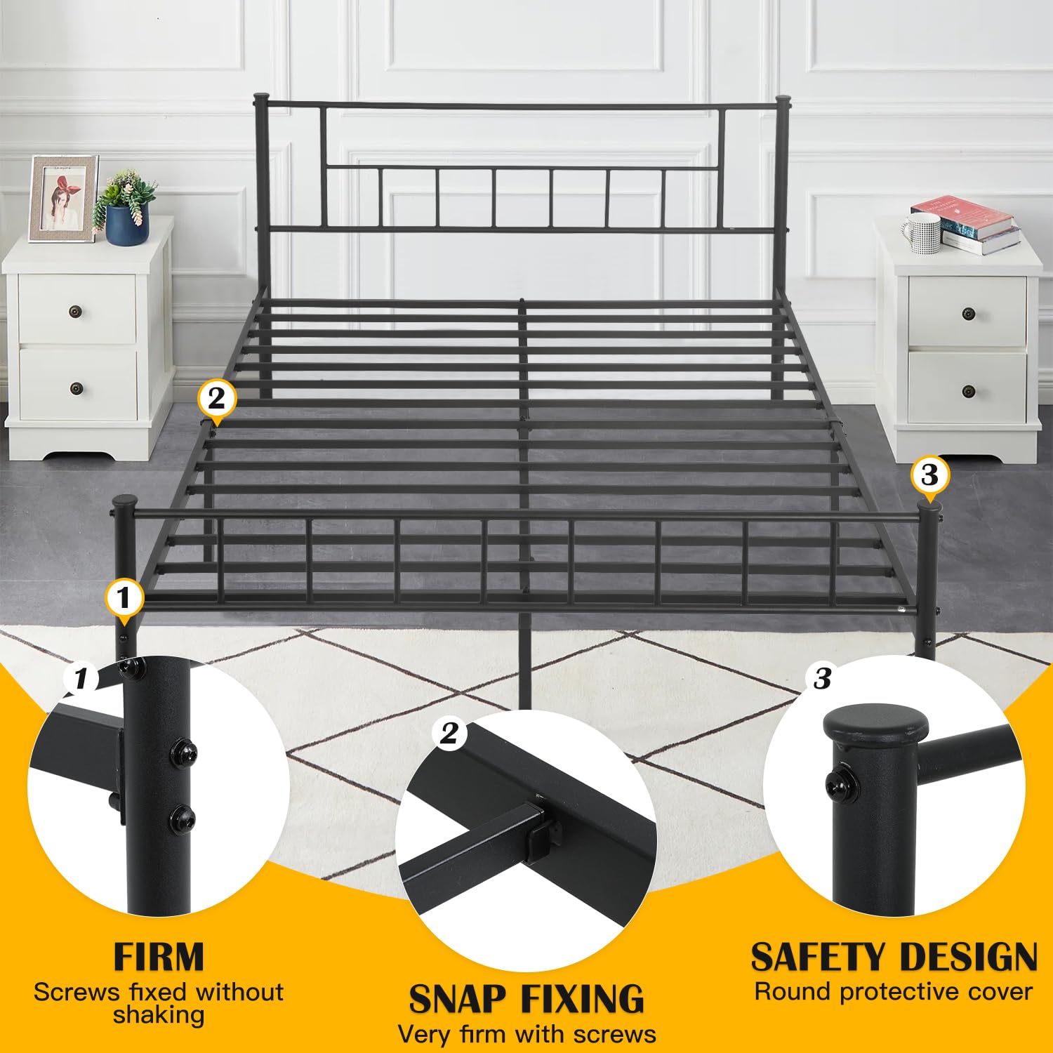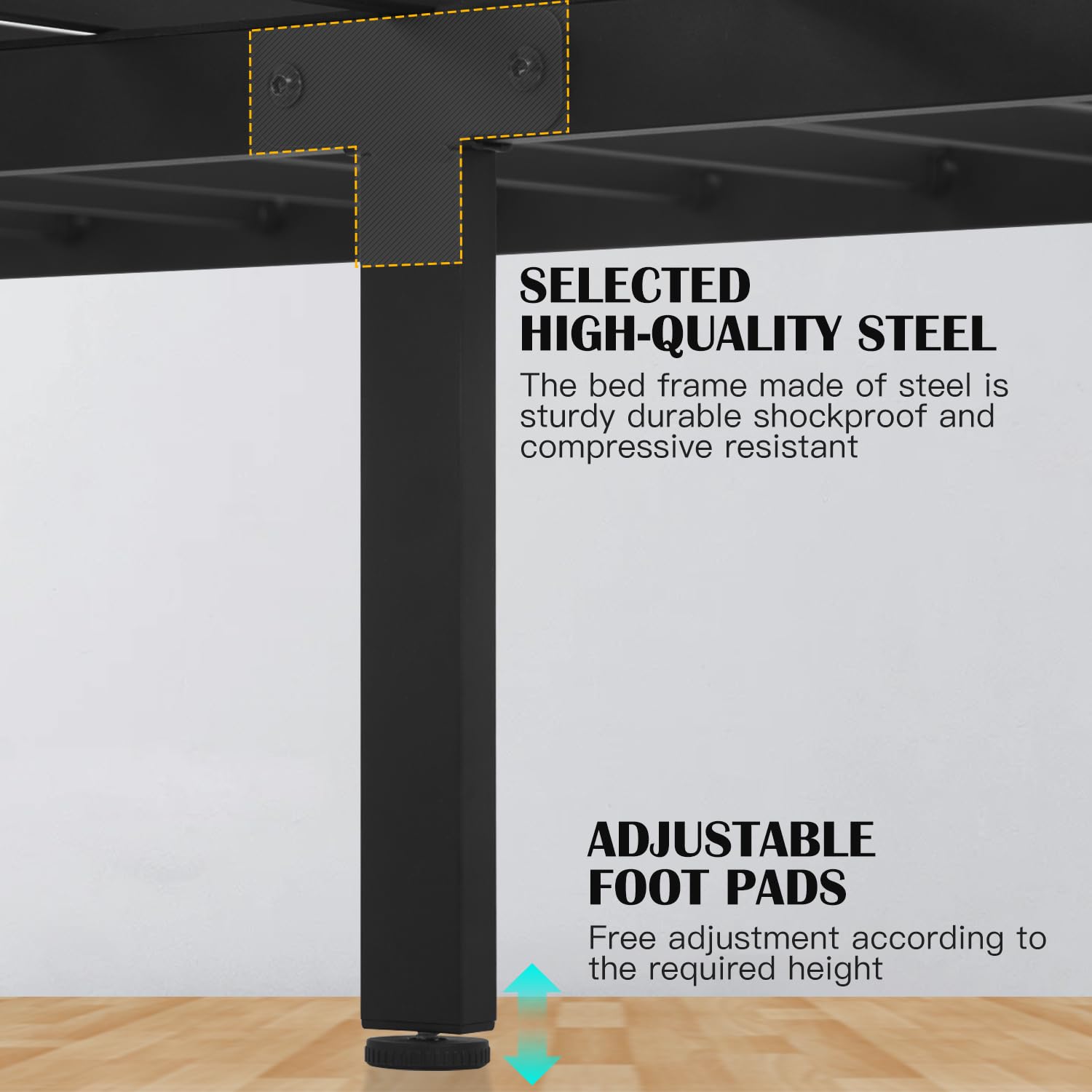 - Heavy Duty Bed Frame: Our bed frame is constructed with premium quality steel to provide unparalleled strength and stability, ensuring it can support your mattress and you with ease. Say goodbye to wobbly nights!