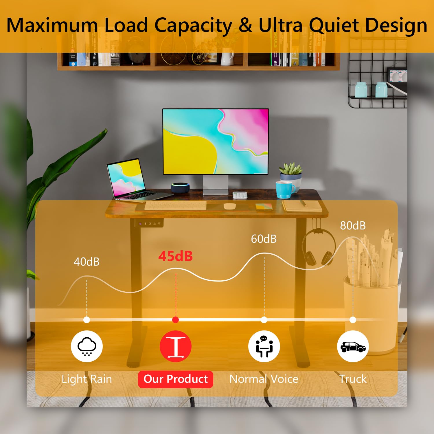 PayLessHere 40 inch Adjustable Height Standing Desk Computer Desk with Large Space and Headphone Holder Office Desk with Electric Lifting and Memory Function,Brown