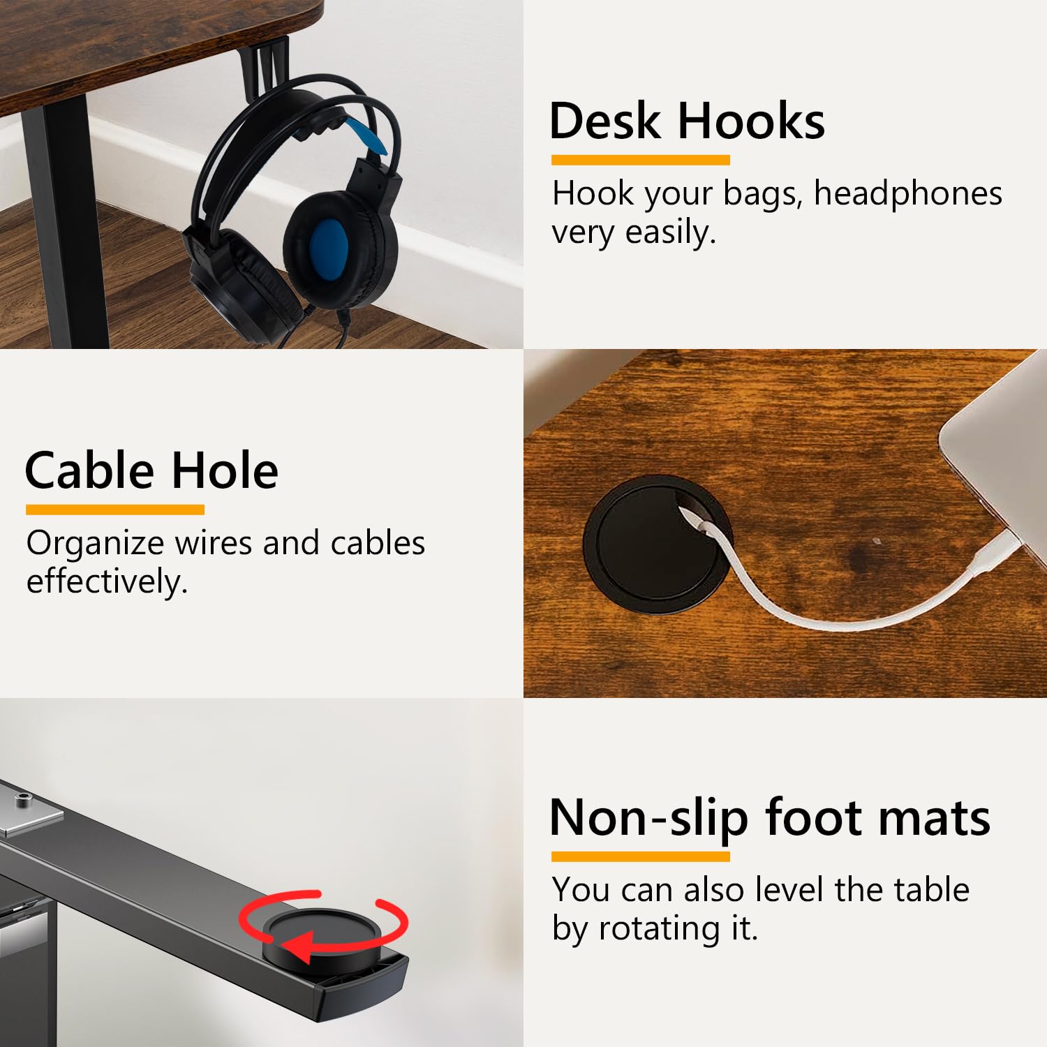 - Multi-function: Besides standing desk’s height adjustability, this versatile computer desk comes equipped with a large spacious surface, providing ample room for your computer, documents, and other work essentials. The built-in headphone holder helps keep your workspace organized, allowing you to focus on tasks without clutter or distractions. Computer desk stylish design, available in Black, Brown, and White, complements various office, bedroom, or meeting room decors.