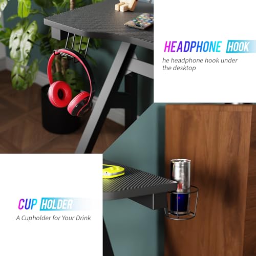 - Accessories Galore: Our gaming desk comes with a plethora of accessories to enhance your setup. You'll find a cup holder and headphone hook for added convenience, ensuring your refreshments and gaming gear are always within arm's reach.