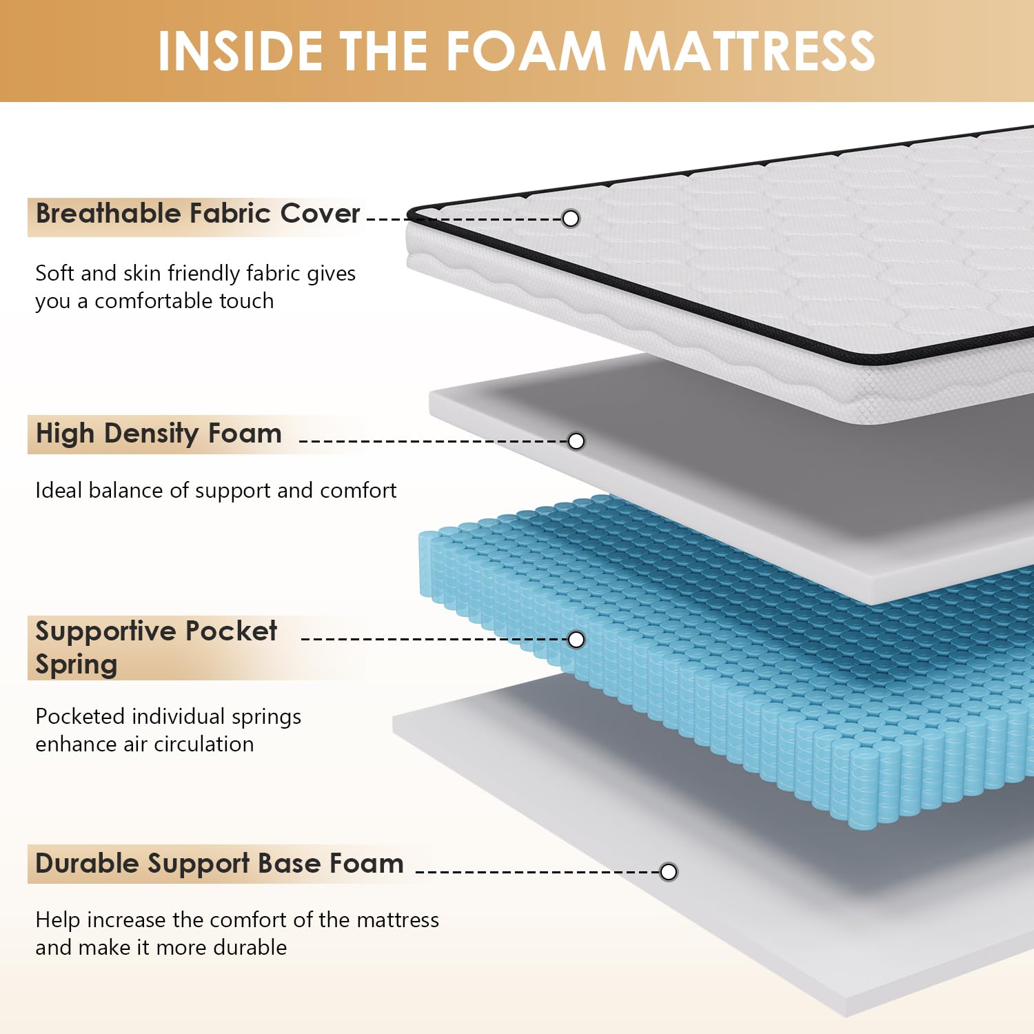 - Health and Safety: This 6-inch mattress blend is U.S. certified, ensuring it meets safety standards. The shell is made of skin-friendly knitted fabric that prevents skin irritation. This mattress provides a soft, breathable sleep experience