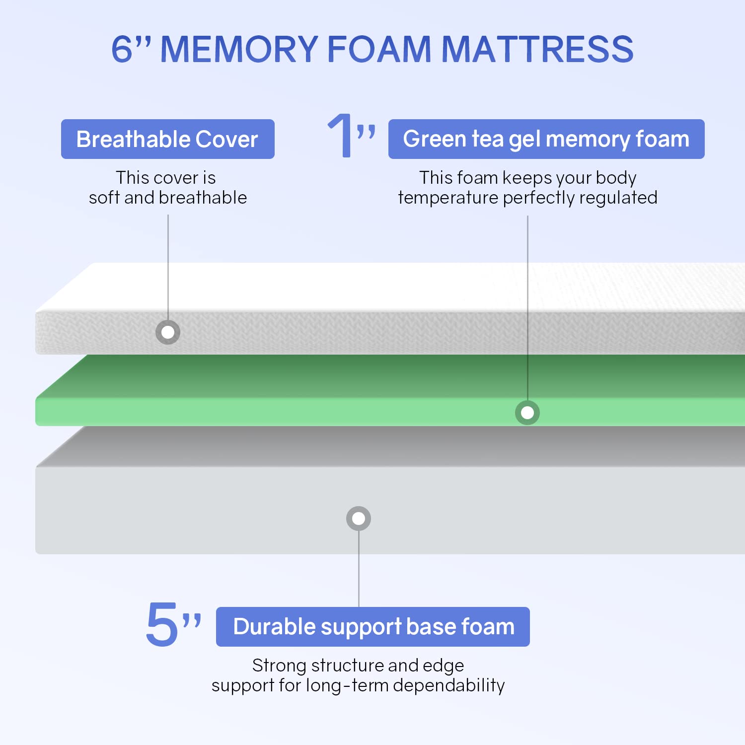 PayLessHere 6 Inch Twin Green Tea Cooling Gel Memory Foam Mattress Twin Size in a Box,Medium-Firm,Pressure Relief&Temperature Regulation,CertiPUR-US Certified,White