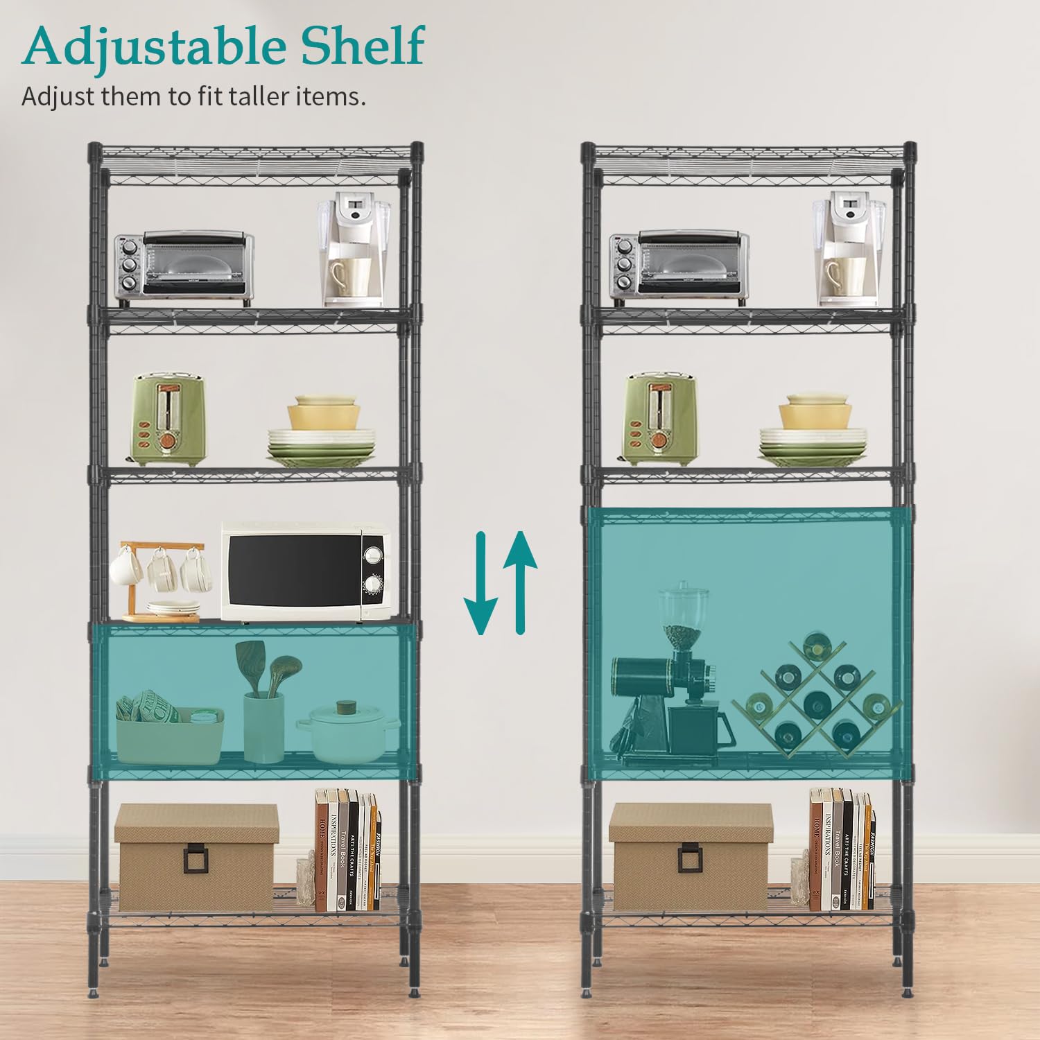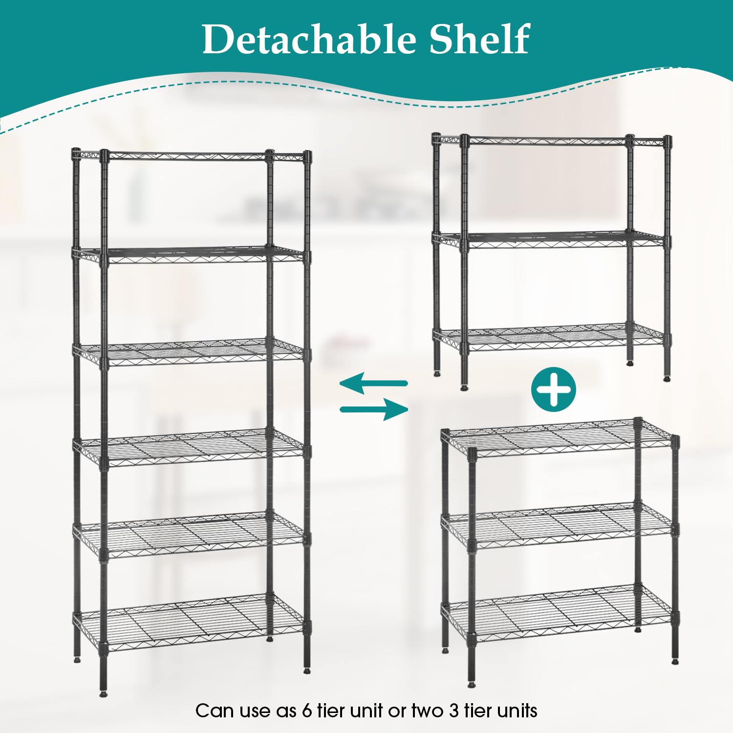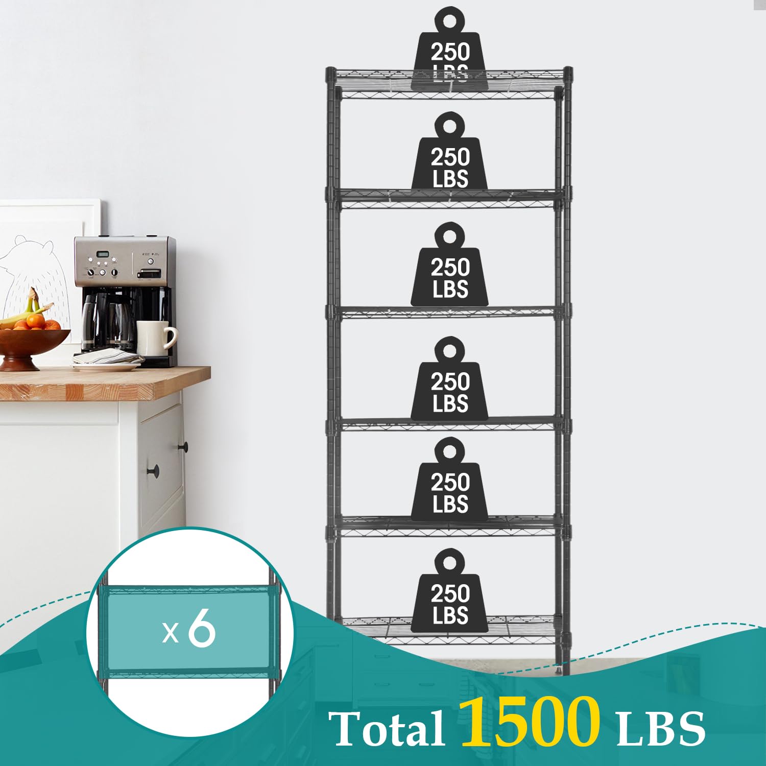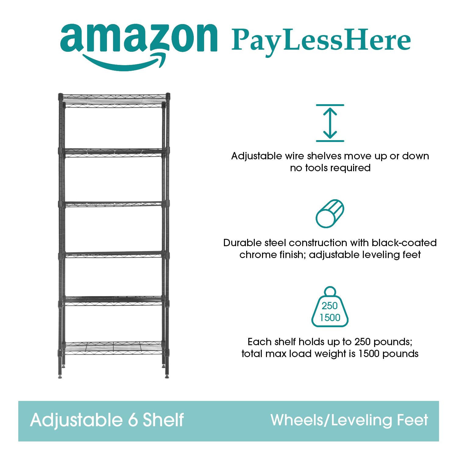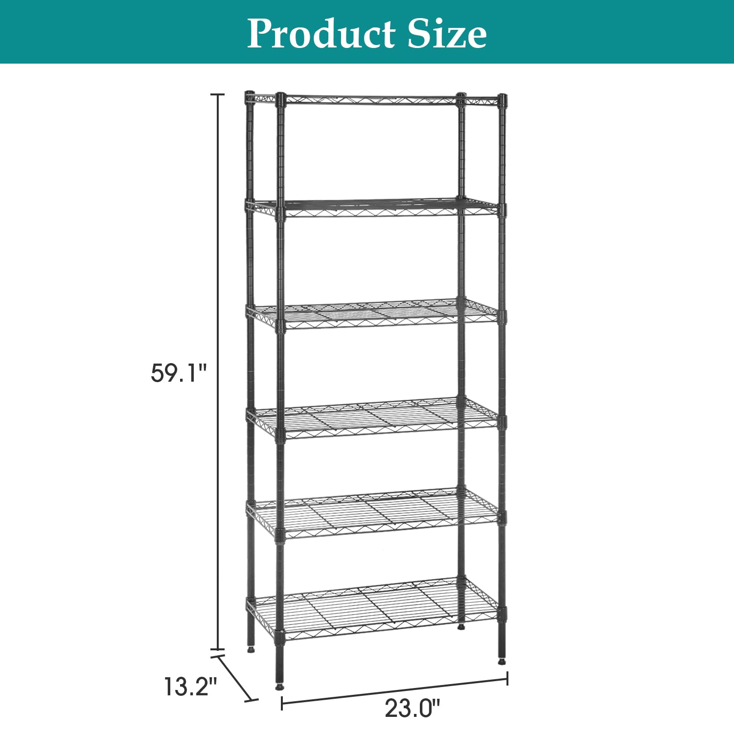 PayLessHere | 6-Tier Wire Shelf | 23"x13"x59" | Black | Adjustable Racks | Heavy-Duty Storage Shelves, Holds Upto 1500 lbs | Rust-Resistant, No-Tool Assembly | for Home, Garage Shelving