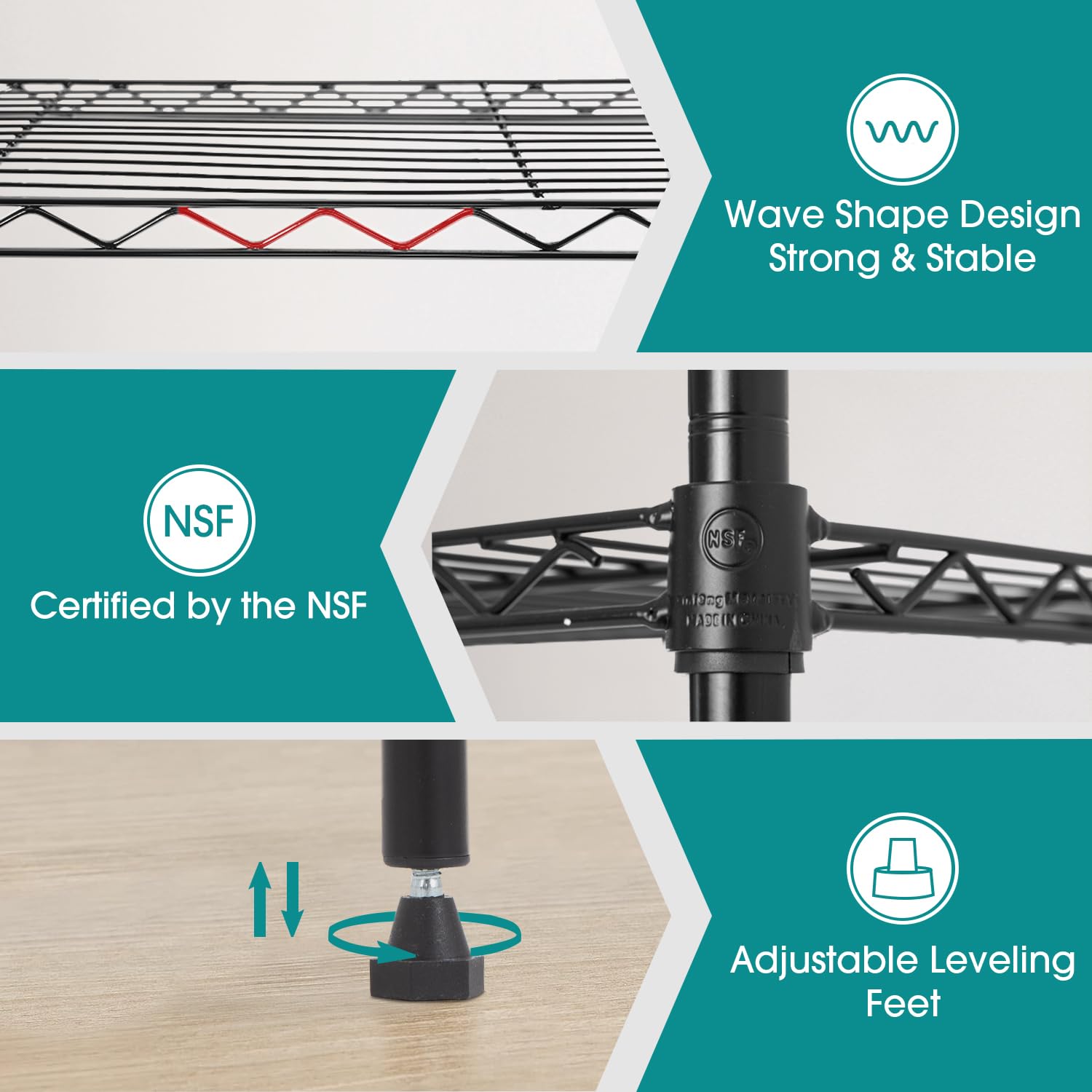 - ADJUSTABLE DESIGN FOR FLEXIBILITY: Customize shelf spacing to fit tall, bulky, or oddly shaped items, perfect for adapting your wire shelf to evolving storage and organization needs.