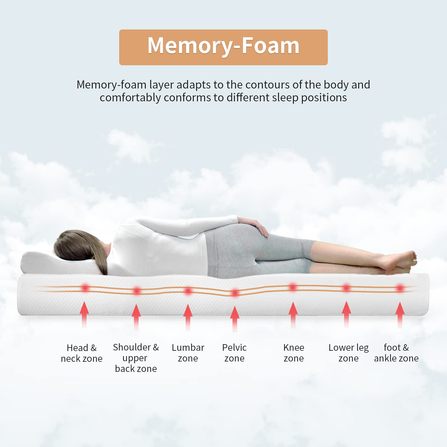 - High quality materials: Our memory sponge mattresses, combined with professional knowledge and the best materials, adopt advanced sleep technology. Gel memory foam helps with continuous airflow and air permeability; The surface of the mattress is made of skin-friendly fabric to improve breathing ability. The foam layer in the middle is designed as a airflow channel to increase airflow through all areas of the foam mattress.