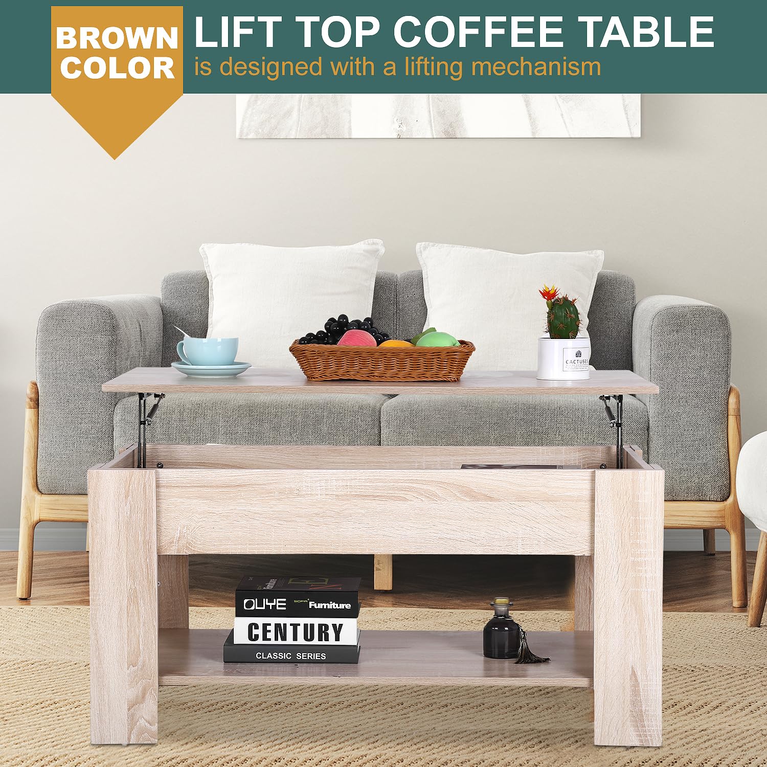 PayLessHere Coffee Table Lift Top Coffee Tables with Hidden Compartment and Storage Shelf Wooden Lift Tabletop Dining Table for Living Room Home Small Space, Natural