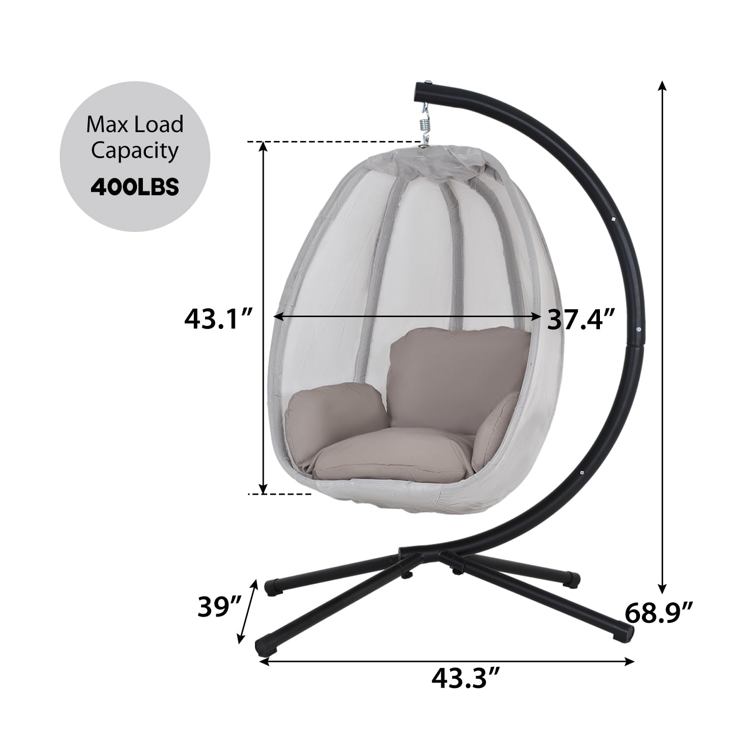 - 400 lbs Weight Capacity : Our heavy-duty hanging egg chair is designed to accommodate up to 400 pounds, providing you with peace of mind and safety as you unwind. It's the perfect choice for individuals and couples who appreciate both comfort and sturdiness in their outdoor seating. Unwind in style with a grey hanging egg chair.