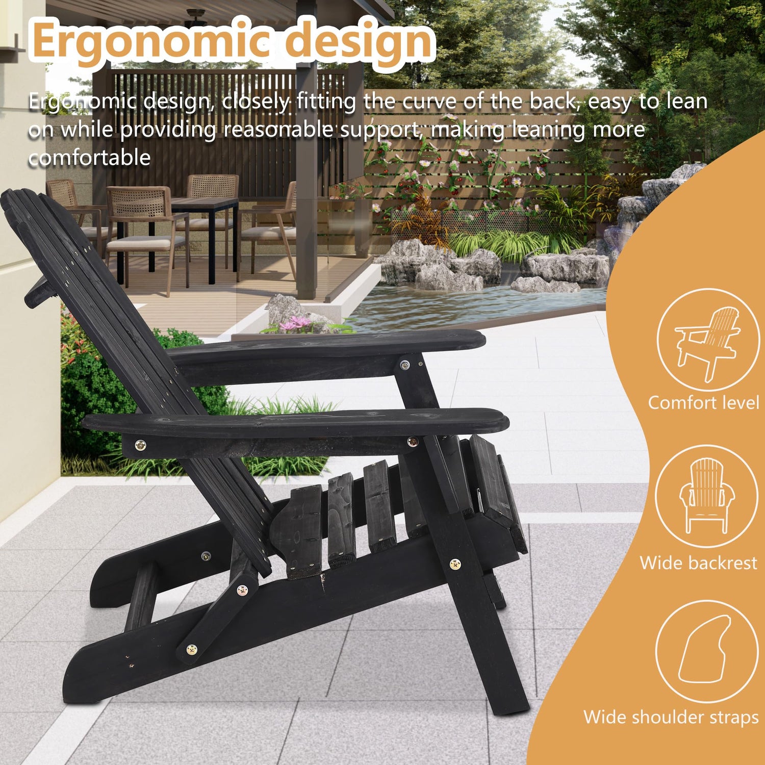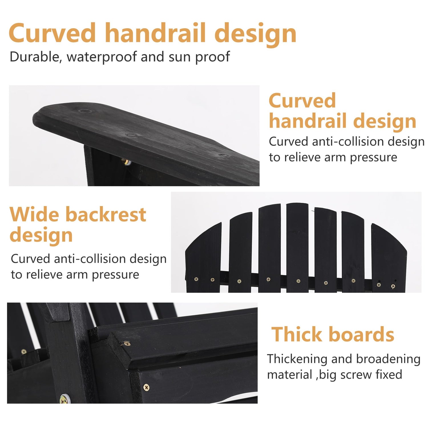 PayLessHere Outdoor Lounger Chairs Set of 2 All Weather Fire Pit Chairs Wooden Adirondack Chairs with Easy Assemble for Patio Garden Lawn Beach Fire Pit, Black