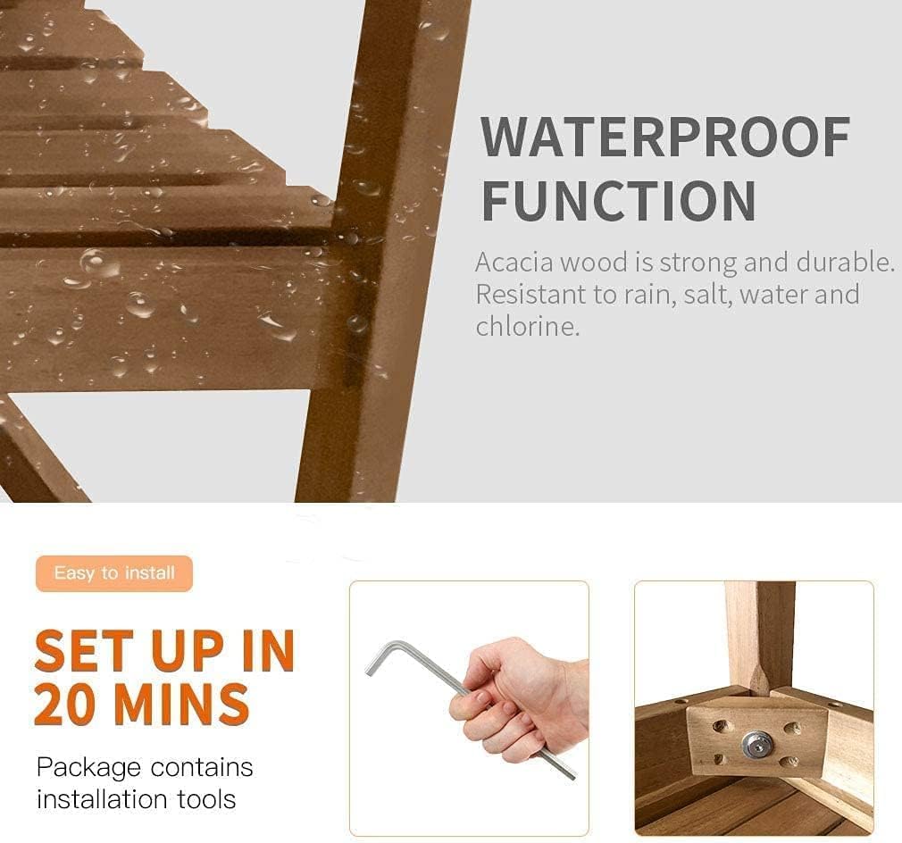 Constructed from real Arabic acacia wood, the bench boasts a rugged and durable structure, ensuring its longevity for over a decade. The natural finish highlights the wood's inherent beauty, making it an ideal choice for your garden or backyard. Experience unmatched strength and durability with this outdoor bench, which can easily withstand the elements while maintaining its appeal.