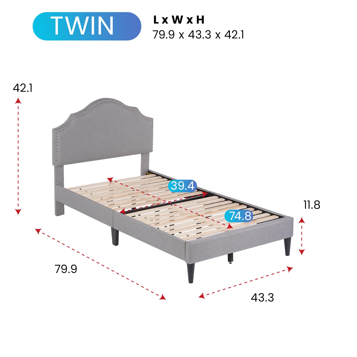 PayLessHere Upholstered Twin Platform Bed Frame Mattress Foundation with Fabric Headboard and Wooden Slats Support, Fully Upholstered No Box Spring Needed Non-Slip and Noise-Free