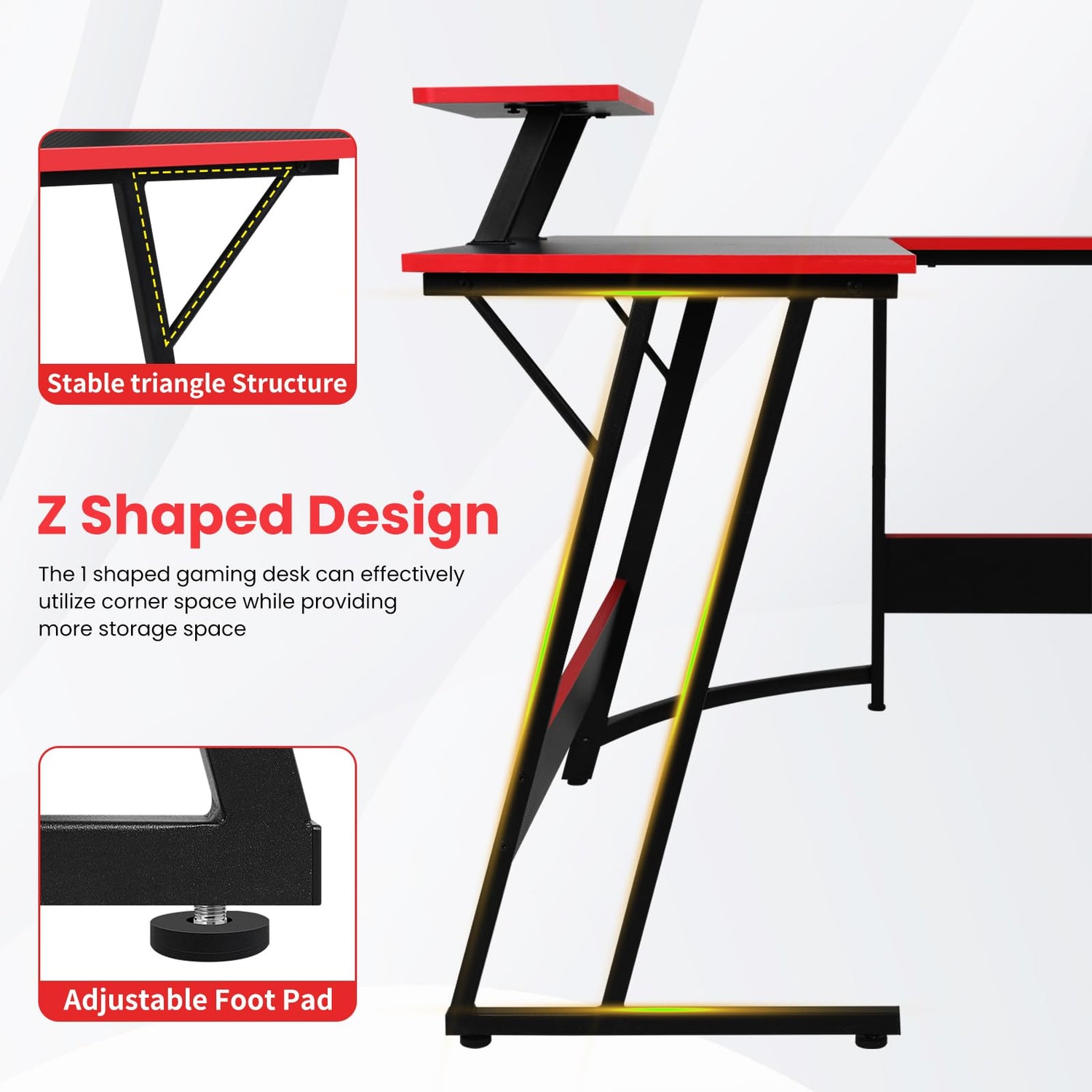 - 🎮【Durable & Sturdy Construction】Constructed with metal frame and P2 grade particleboard, this upgraded computer desk is much more firm and durable with a better load-capacity. The L shape desk desktop full of fabulous gloss and delicate touch. Ultra-sturdy Z-shaped legs are strong enough to support up to 176lbs of weigh.