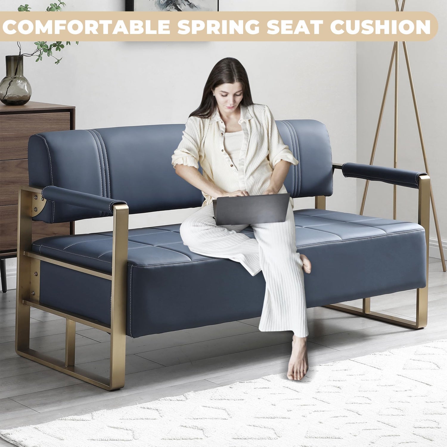 - Unique Design - The exquisite sewing lines and golden metal armrests make this loveseat sofa look elegant and Light luxury, which will definitely add fashion to your cozy home.