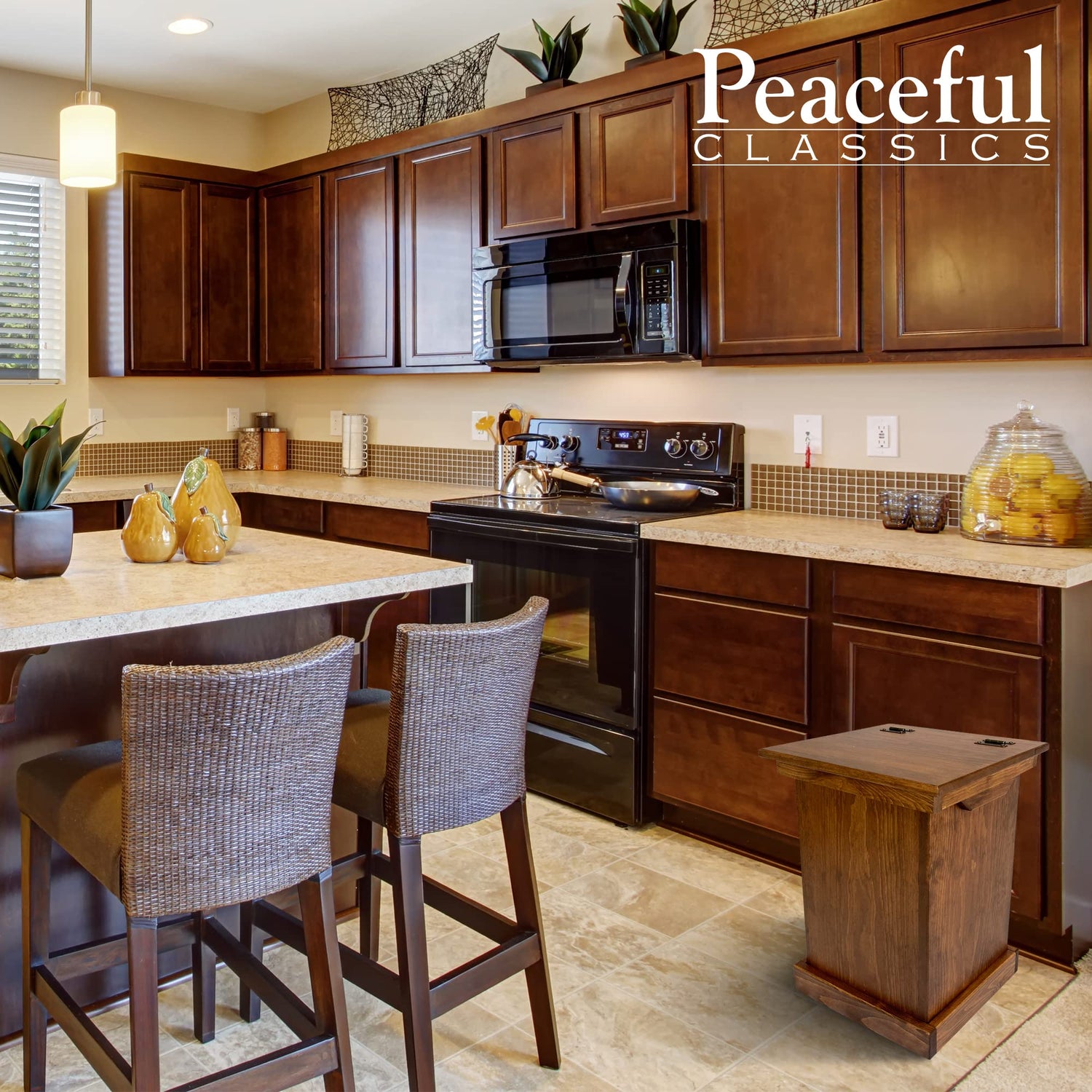 Peaceful Classics Wood Garbage Bin Cabinet - Wooden Trash Can w/Hidden Design, Stylish Kitchen Garbage Can, Amish Made Cabinet Hidden Trash Can, Handmade Waste Bin Cabinet Storage (Cherry)