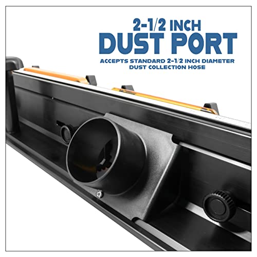 Details: INCLUDES: 24-Inch Router Table Fence System includes Adjustable Bit Guard, Featherboard, Reversible Flip Stop, Dust Port and a Right to Left Measure Tape which will provide you with precise measurements for maximal results POWERTEC ROUTER FENCE: Can be used with most models of router tables or simply make your own. This deluxe version is full featured and performs all router fence functions including vertical jointing, instructions included. PREMIUM FEATURES: Easy-to-assemble design, a mounting slot range from 18-1/8” to 23-3/8” (able to accommodate and work with most existing router tables), and a dust collection port that accepts 2.5” ID dust and shop vac hoses directly from the back of the fence. Includes a flip stop that slips into the top mounted t-slot, providing “quick positioning” for all your needs. The flip arm can quickly be moved out of the way and can be relocated from the right side to the left side of the body. QUALITY BUILD: Router fence is engineered with heavy duty anodized aluminum for corrosion resistance – aluminum extrusion possesses universal t-slots (front and top), excellent for a variety of woodworking accessories MDF FENCE FACES: Completely adjustable for vertical joining (in and out), and are made from smooth MDF coated with scratch and shatter resistant melamine laminate for long-term durability