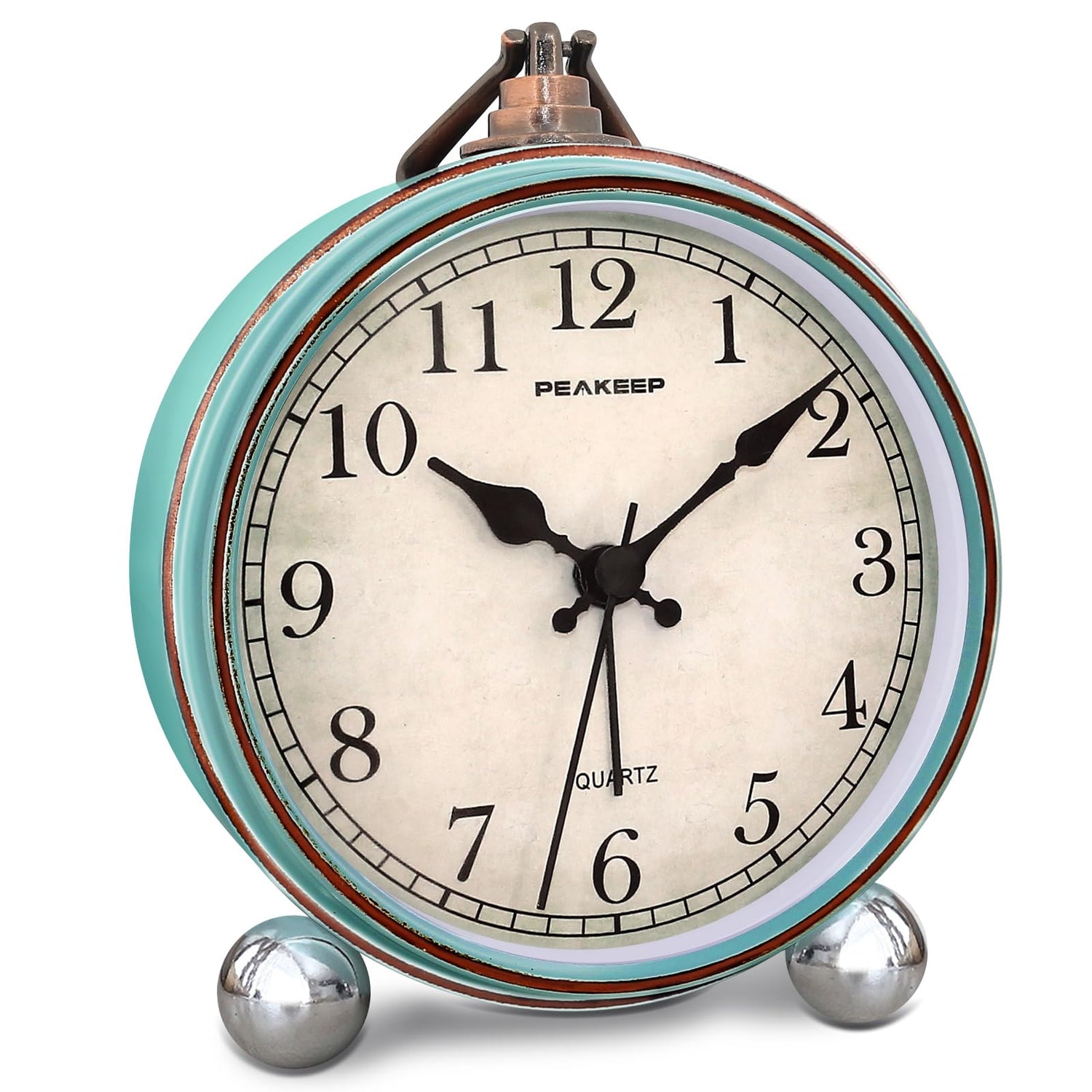 Peakeep 4" Small Battery Operated Antique Retro Analog Alarm Clock for Room Decor, Silent Elegant Bedside Desk Table Gift Clock