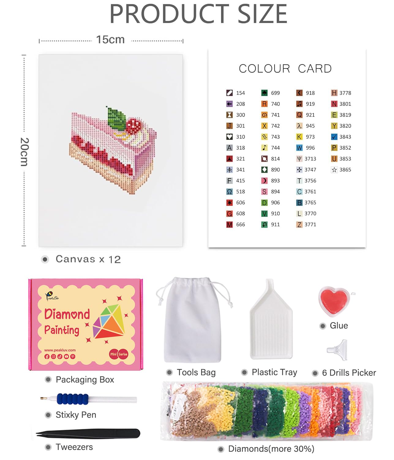 - Beginner-Friendly: The Cake mini diamond painting kits comes with a comprehensive guide, making the canvases easy to handle for those new to diamond art. Completing each piece not only provides a feeling of accomplishment but also offers a moment of tranquility in a busy schedule—ideal for mindfulness and relaxation.