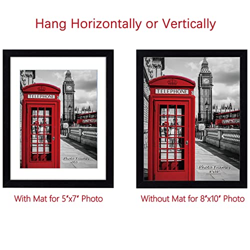 - SIZE: This 8x10 frame is designed to fit a 5x7 photo with a mat or, if you remove the mat, it can fit an 8x10 photo. They are suitable for displaying your family photos, landscape photos, certificates, diplomas, artwork, etc.