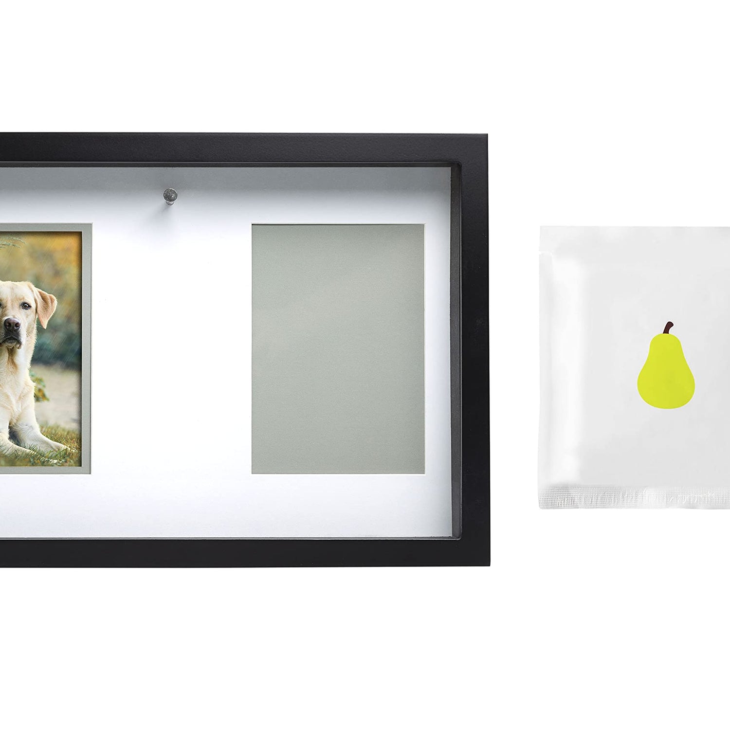 Details: Capture and cherish your four-legged friends print forever next to their collar and your favorite photo of them with Pearhead’s pet memorial frame. This modern black shadowbox frame includes everything you need to create this pet memorial: nontoxic, no bake paw imprint material, easy-to-follow instructions, a peg for hanging your pet’s collar and a photo insert. This pet keepsake frame is perfect for cats, dogs and all other animals. The finalized frame is the perfect dog owner gift, cat owner gift, cat memorial, dog memorial, home décor and office décor. At Pearhead, we aim to create genuine, quality products to celebrate your special moments in life. We are a family of designers, marketers, and trendsetters bringing products to life that will bring a smile to your face. From concept and design to production and customer service, the Pearhead team works together seamlessly every step of the way. Whether your baby is celebrating their first year of life, you are announcing your pregnancy, or your pup is celebrating his first holiday season, Pearhead is here to share your moments in style. Frame dimensions: 16”W x 10.875”H x 1.9”D; Collar Hanging Pin: 1.25”; Display Depth: 1.25”; Photo and Pawprint Inserts: 4.5”W x 6.5”H