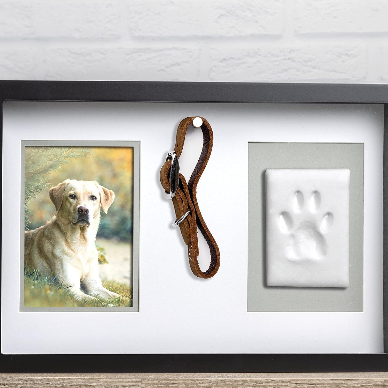 Pearhead Pawprints Collar Frame, Pet Keepsake Photo Frame, Clay Pawprint and Collar Frame, Pet Memorial Picture Frame