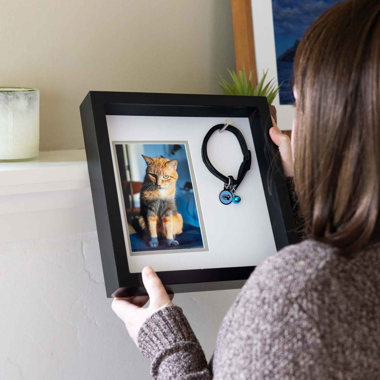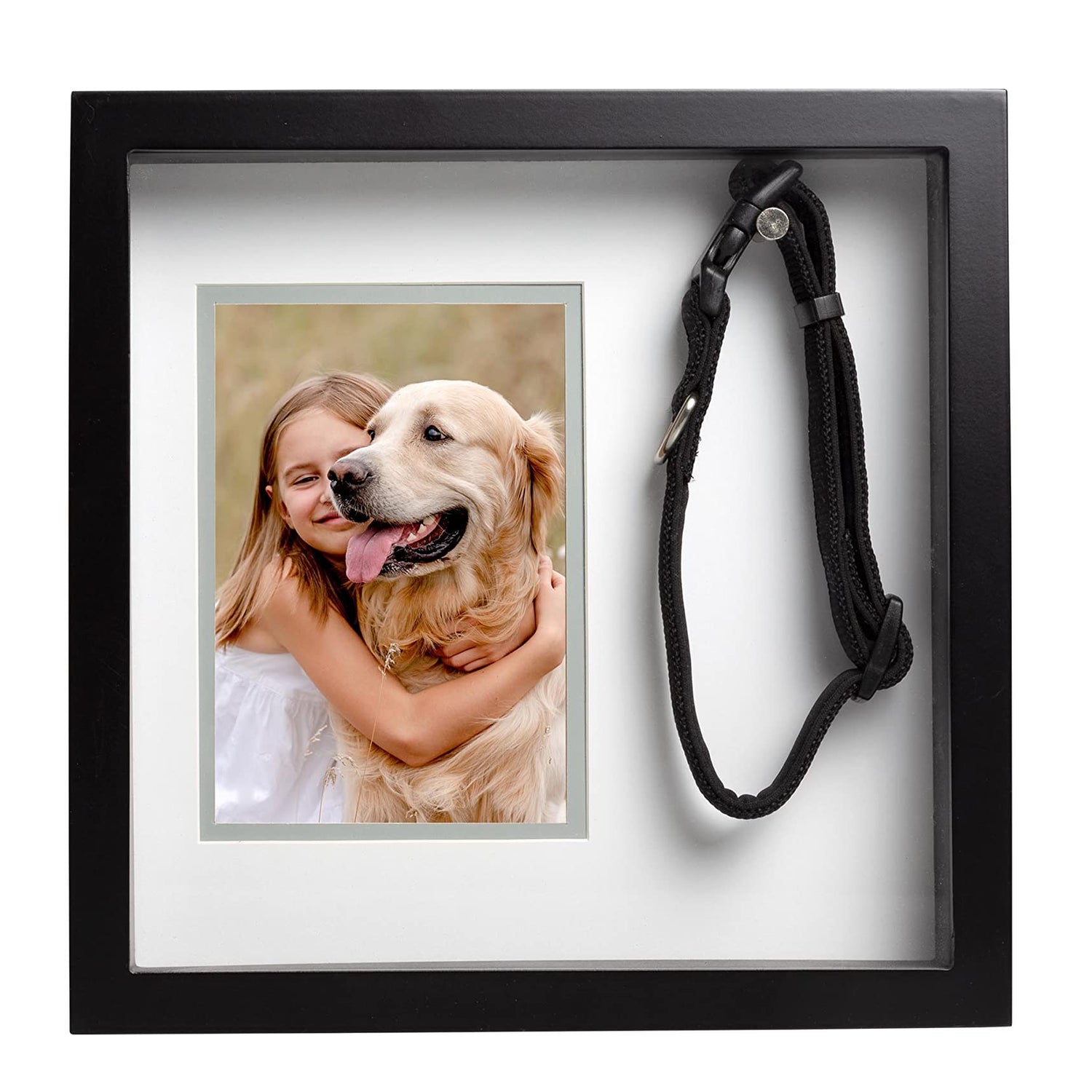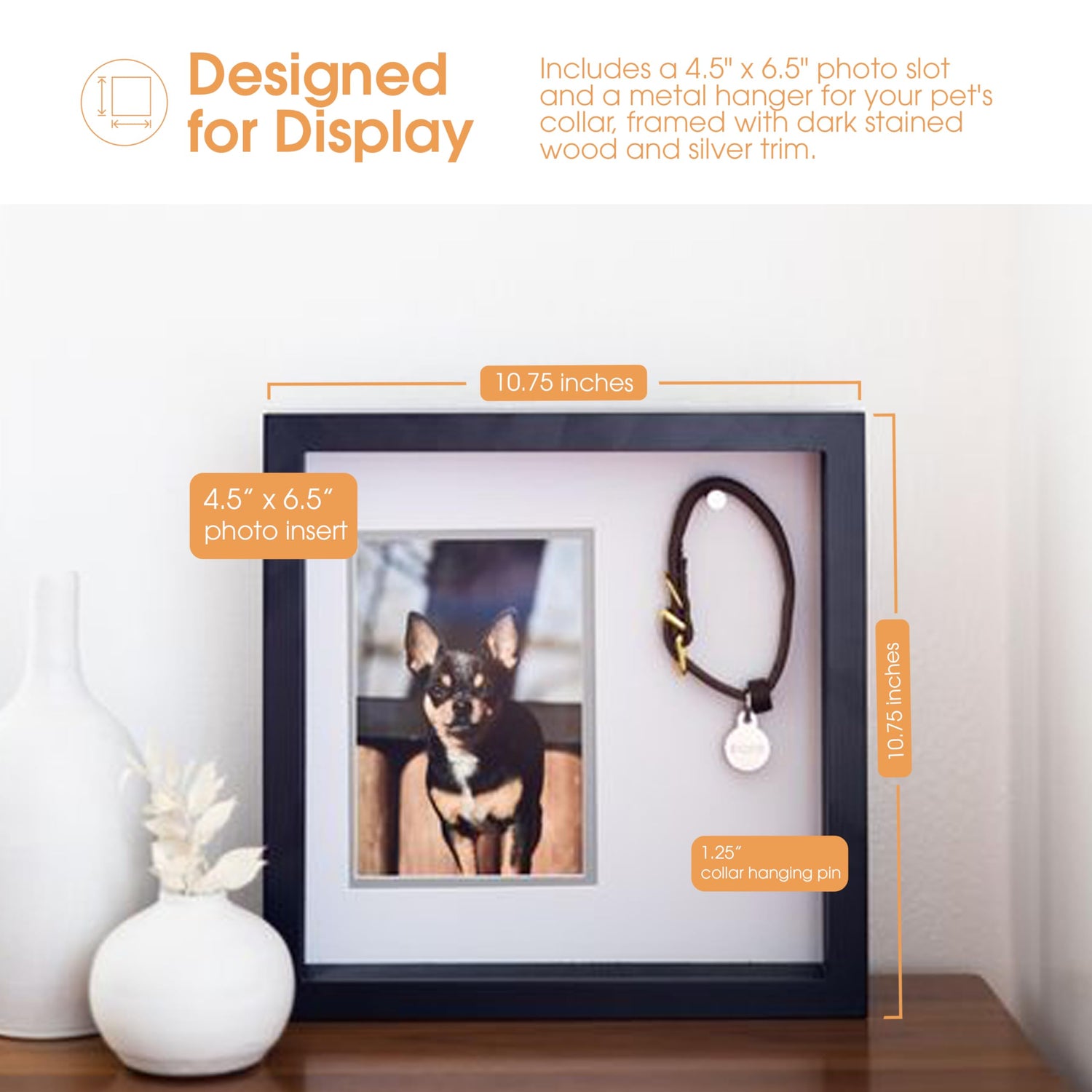 - Cherish Pet Memories: Frame your favorite photo of your pet in Pearhead’s stylish memorial shadow box frame. The frame is designed to display the pet's collar as a tribute to your furry friend.