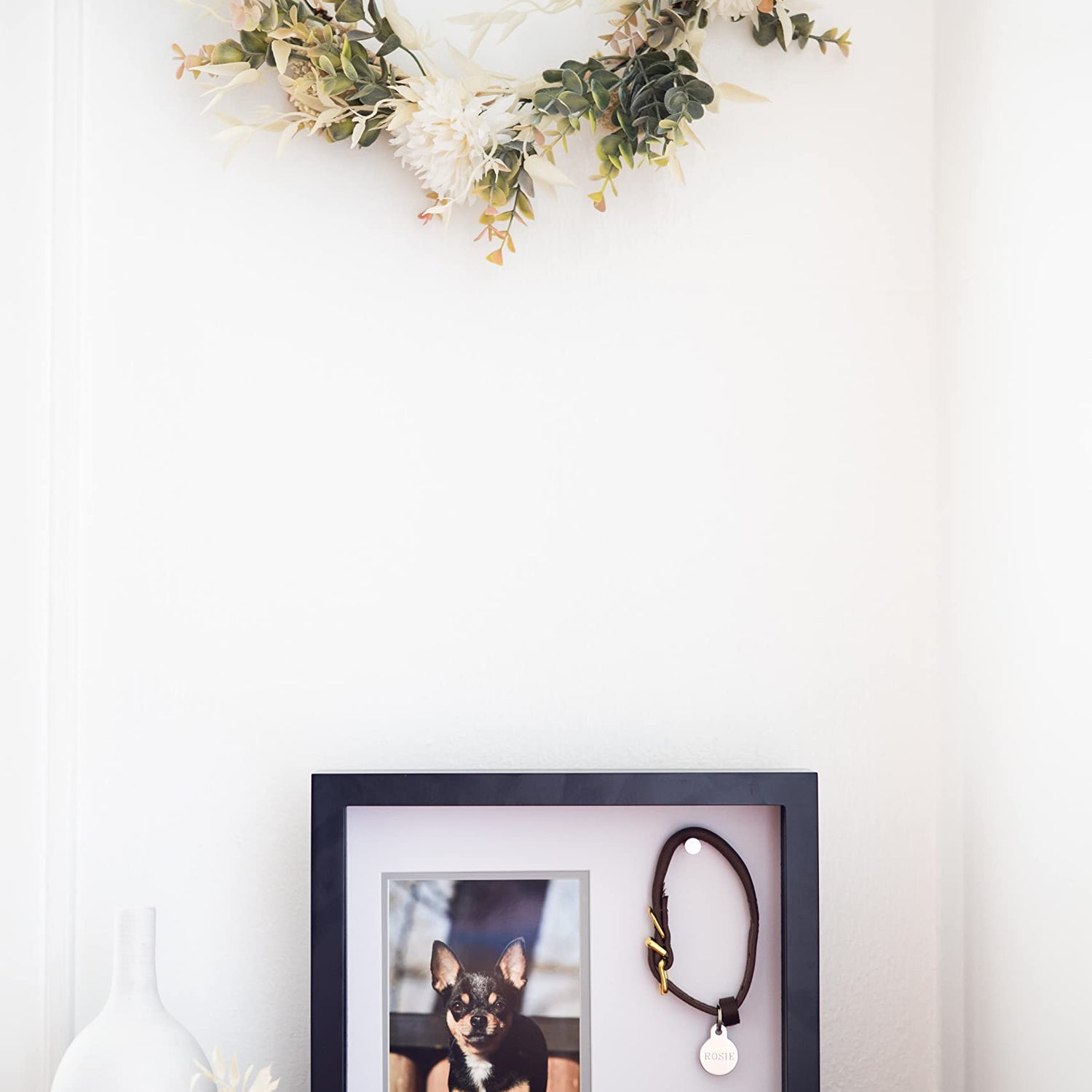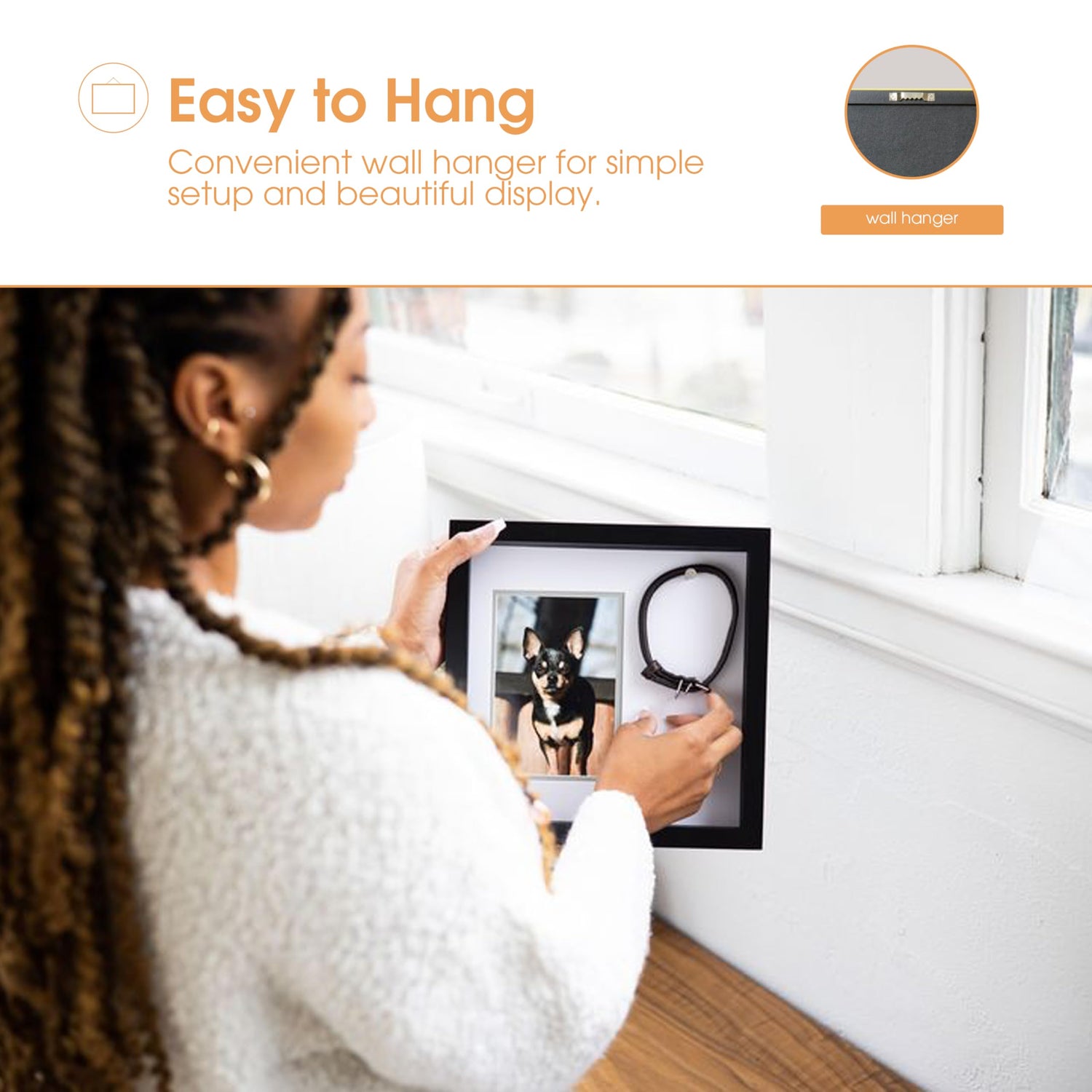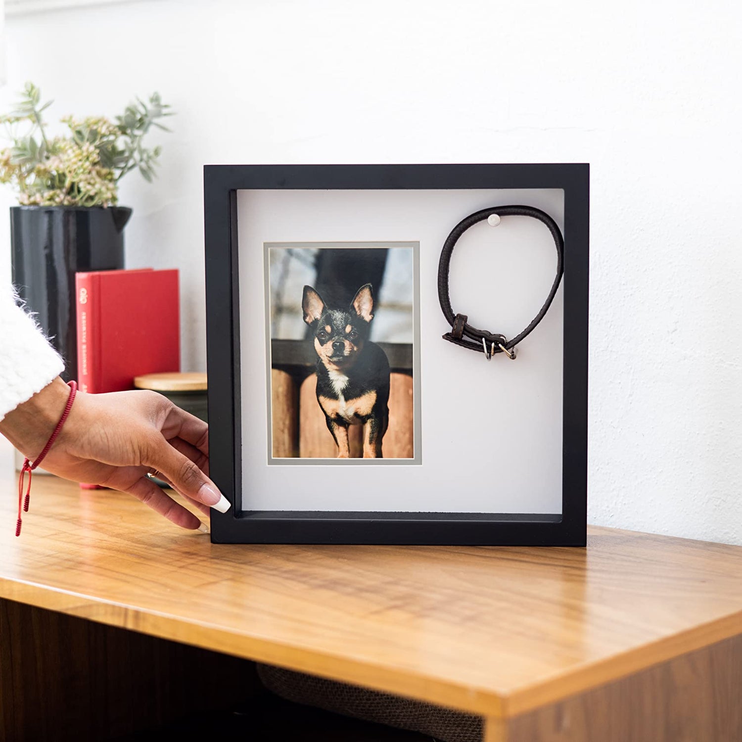 - Cherish Pet Memories: Frame your favorite photo of your pet in Pearhead’s stylish memorial shadow box frame. The frame is designed to display the pet's collar as a tribute to your furry friend.
