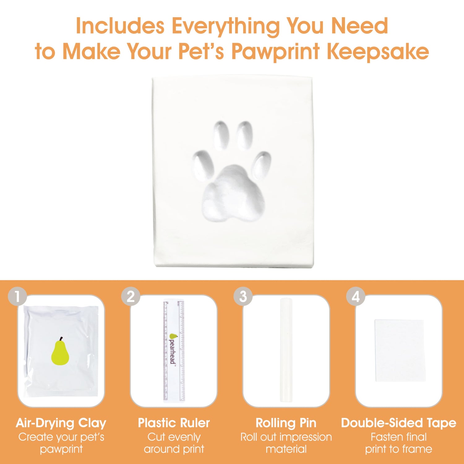 Details: Your pet will always be part of the family. Always and forever cherish their memory with Pearhead’s pawprints memory box. This black, wooden box includes a 4” x 6” photo insert to display your best friend picture. Before your pet goes on to the rainbow bridge, make their print with the included 100% Pet safe clay. The box includes one package of soft, air drying clay, a ruler for cutting, a roller, and double-sided tape. Simply knead the clay for 2-3 minutes and roll it out. Press your pet’s paw in the clay gently but hard enough to create an impression. If you make a mistake - no problem; you can redo it as many times as you need until you get the perfect impression. Once finished making the print, use the ruler to create a square around the impression. Then let dry for 1-2 days and use the double-sided tape to stick the print to the gray backboard mat. This keepsake memory box can be used as an urn to forever cherish your cat or dog. The lid of the box is hinged, making it simple to open and close and place the print, picture, and ashes inside. The large box will fit ashes for an animal up to 100lbs. You can also store your pet’s leash, collar, and favorite toys in this memory box for safe keeping. While your pet might be gone, their memory will forever live on and you can always keep them close with Pearhead’s pawprints memory box. At Pearhead, we aim to create genuine, quality products to celebrate your special moments in life. We are a family of designers, marketers, and trendsetters bringing products to life that will bring a smile to your face. From concept and design to production and customer service, the Pearhead team works together seamlessly every step of the way. Whether your baby is celebrating their first year of life, you are announcing your pregnancy, or your pup is celebrating his first holiday season, Pearhead is here to share your moments in style. Product Dimensions: 10.11” W x 7.87” H x 4.48” D; Photo Insert: 4” x 6”.