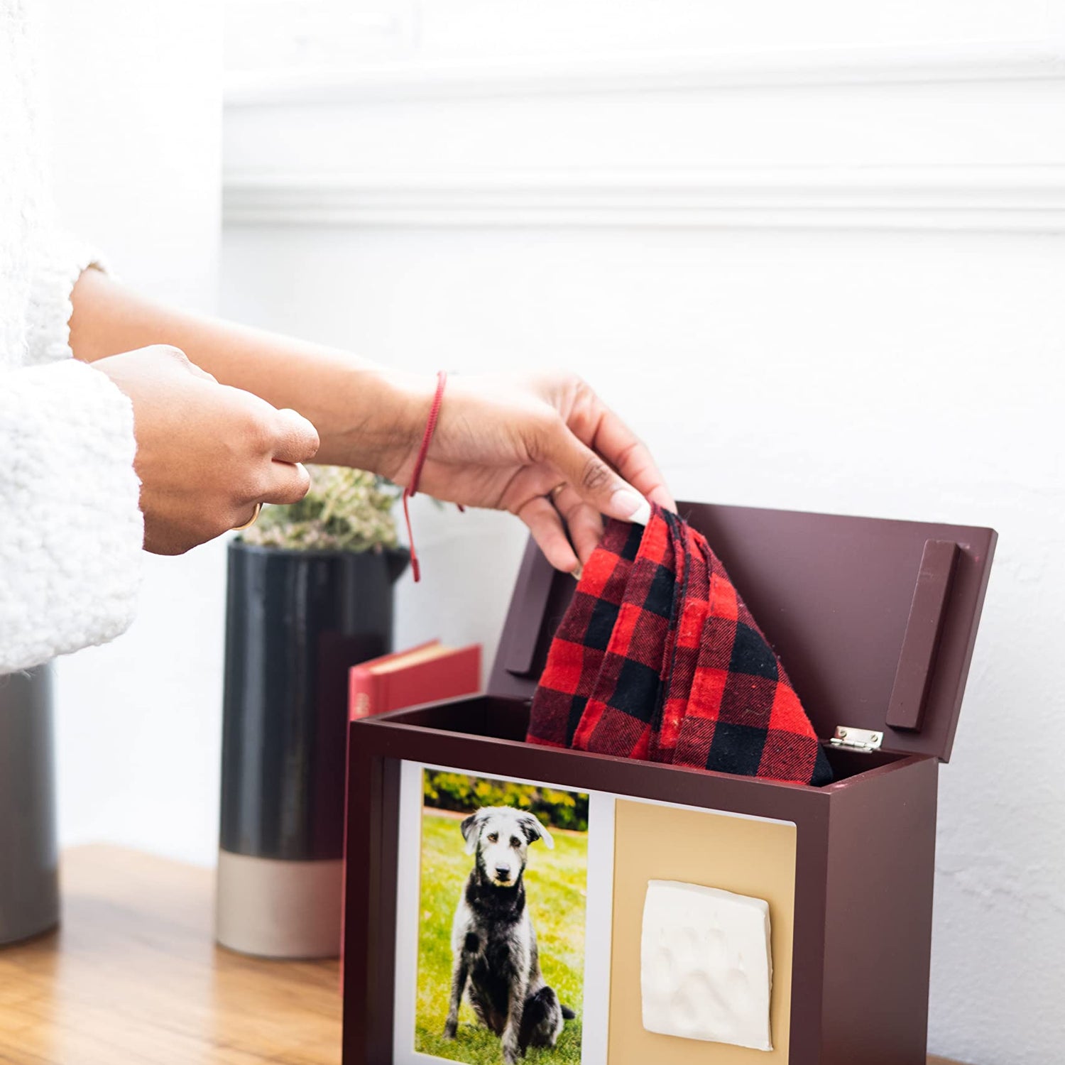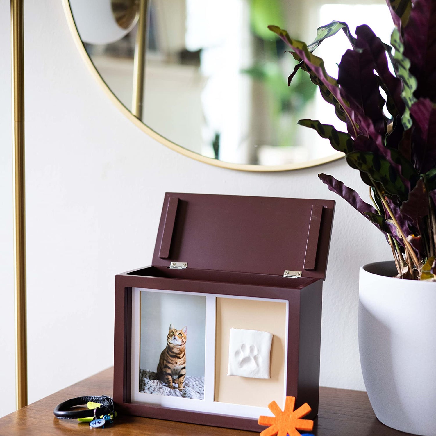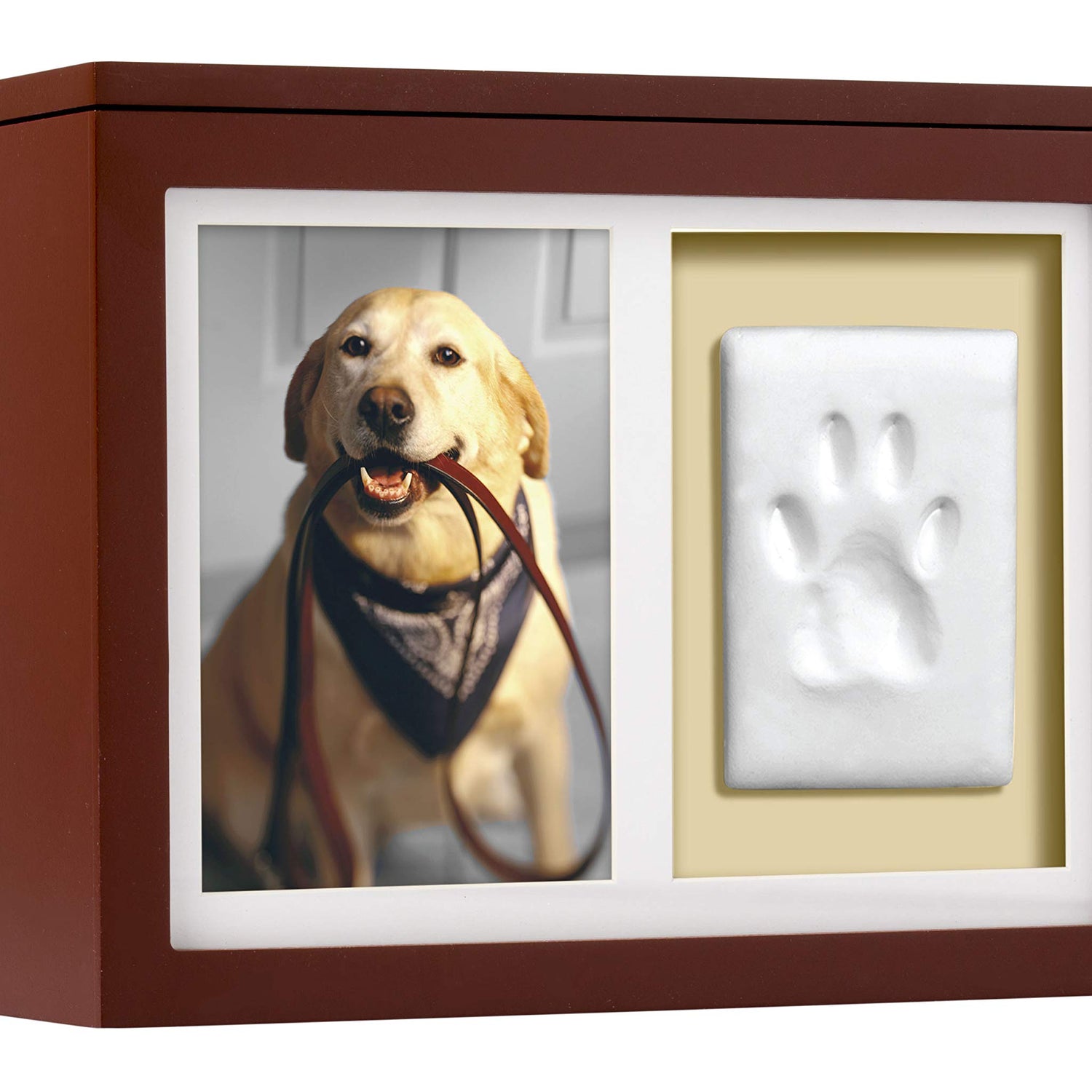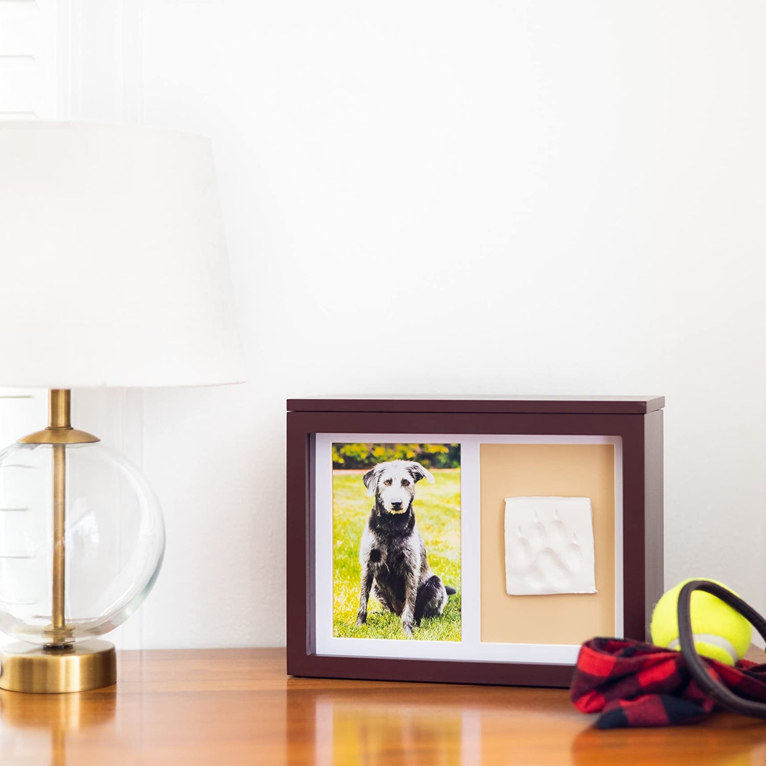 Pearhead Pet Photo Memory Box and Impression Kit for Dog or Cat Paw Print, Clay Paw Print Urn, Pet Memorial, Espresso