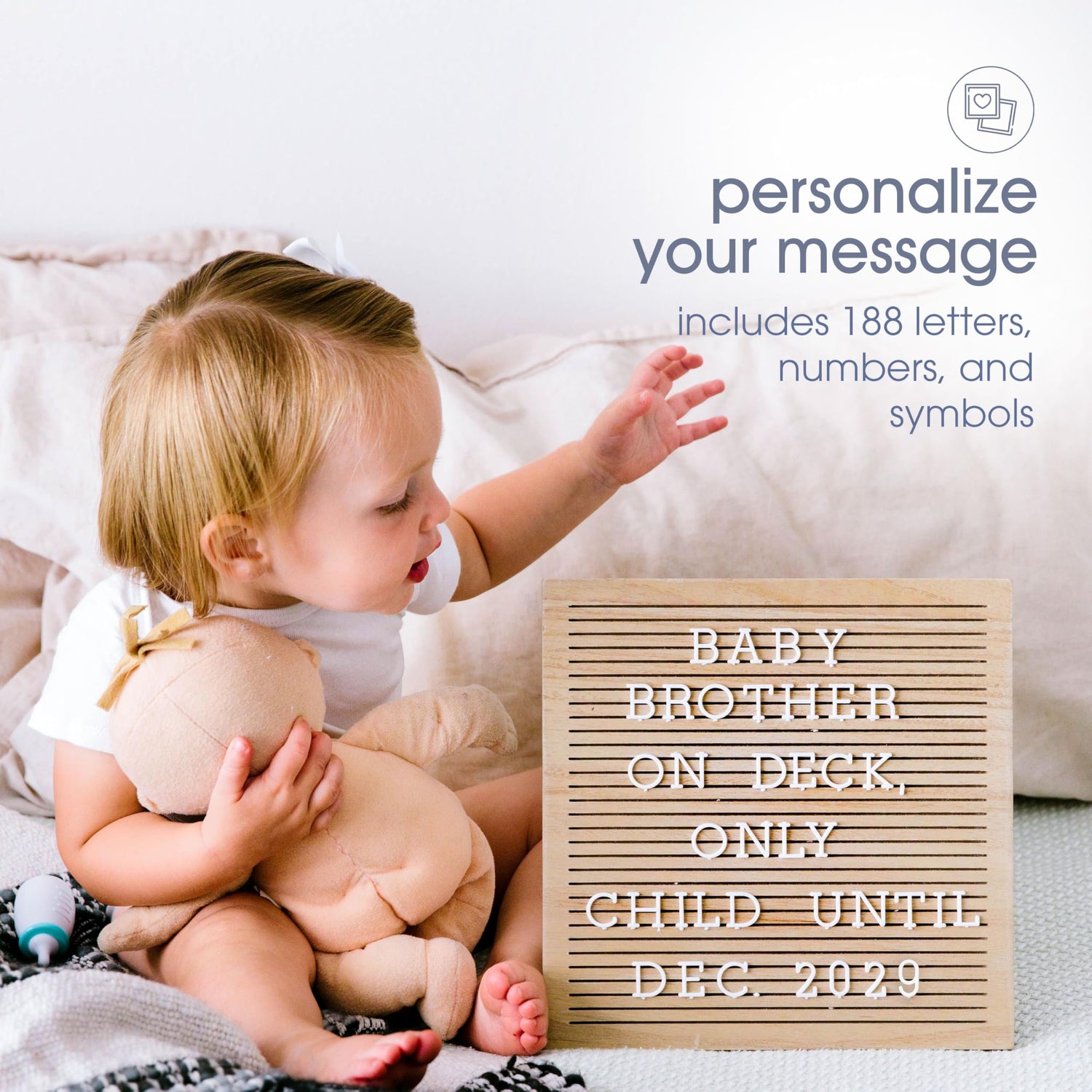 Pearhead Wooden Letterboard Set - Ideal Photo Sharing Prop for Baby Announcements, Milestone Keepsake, Custom Message Board and Shower Gift - Includes 188 Letters, Numbers, and Symbols - Natural Wood