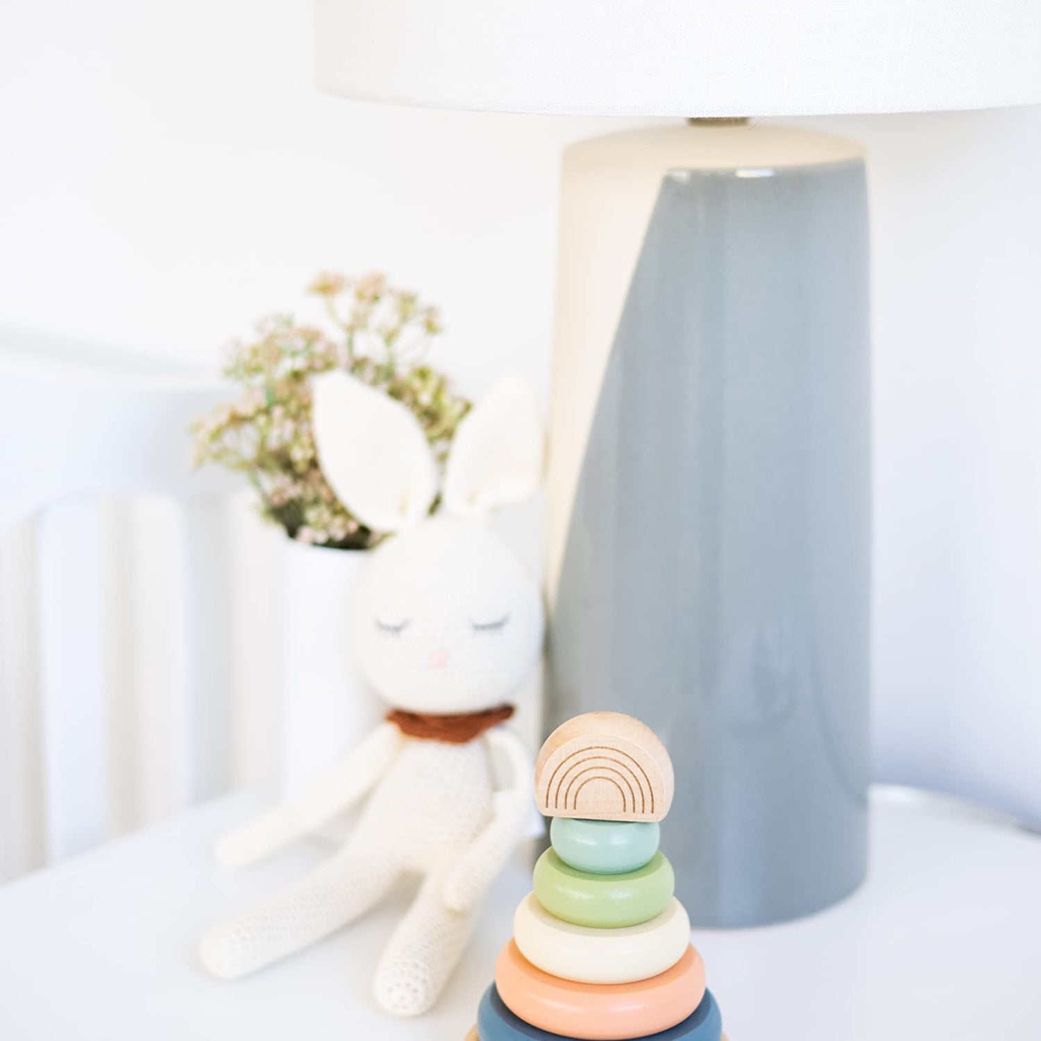 - This fun stacking rainbow toy will help parents and their little ones create special memories they will share and love for years to come! And when playtime is over, this wooden rainbow makes the perfect nursery décor accessory!