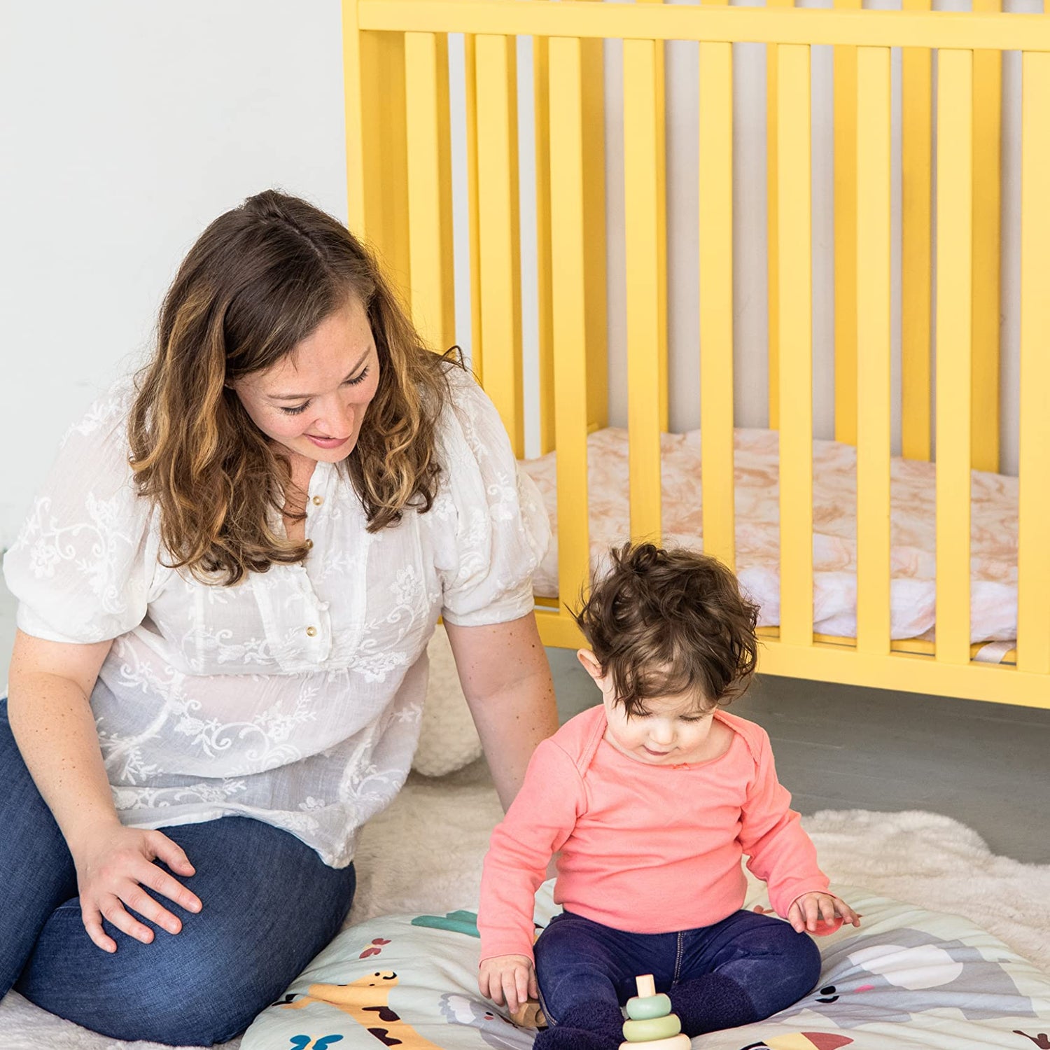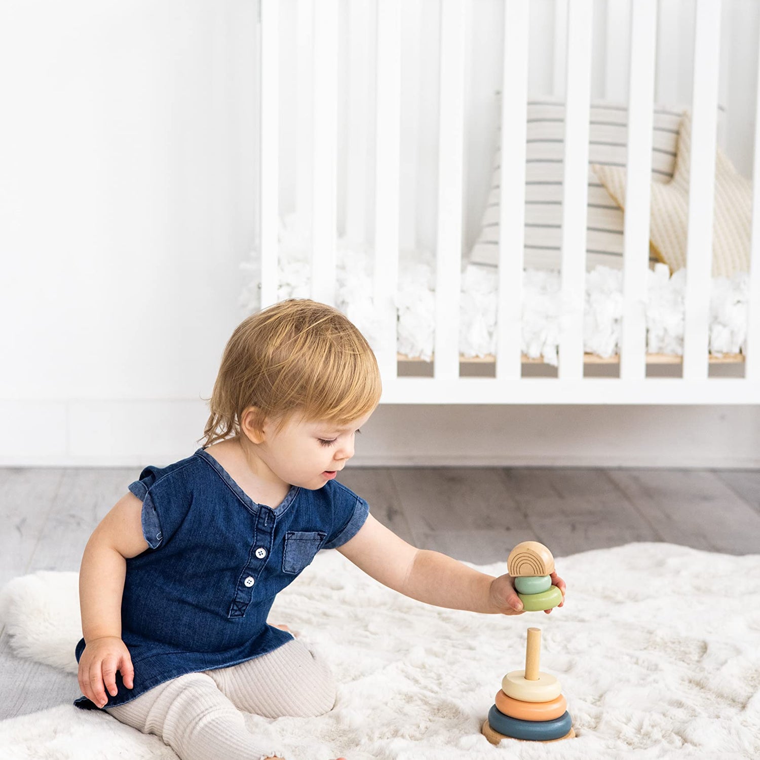 - Your little baby girl or baby boy will love playing, stacking and interacting with this adorable wooden rainbow toy by Pearhead!