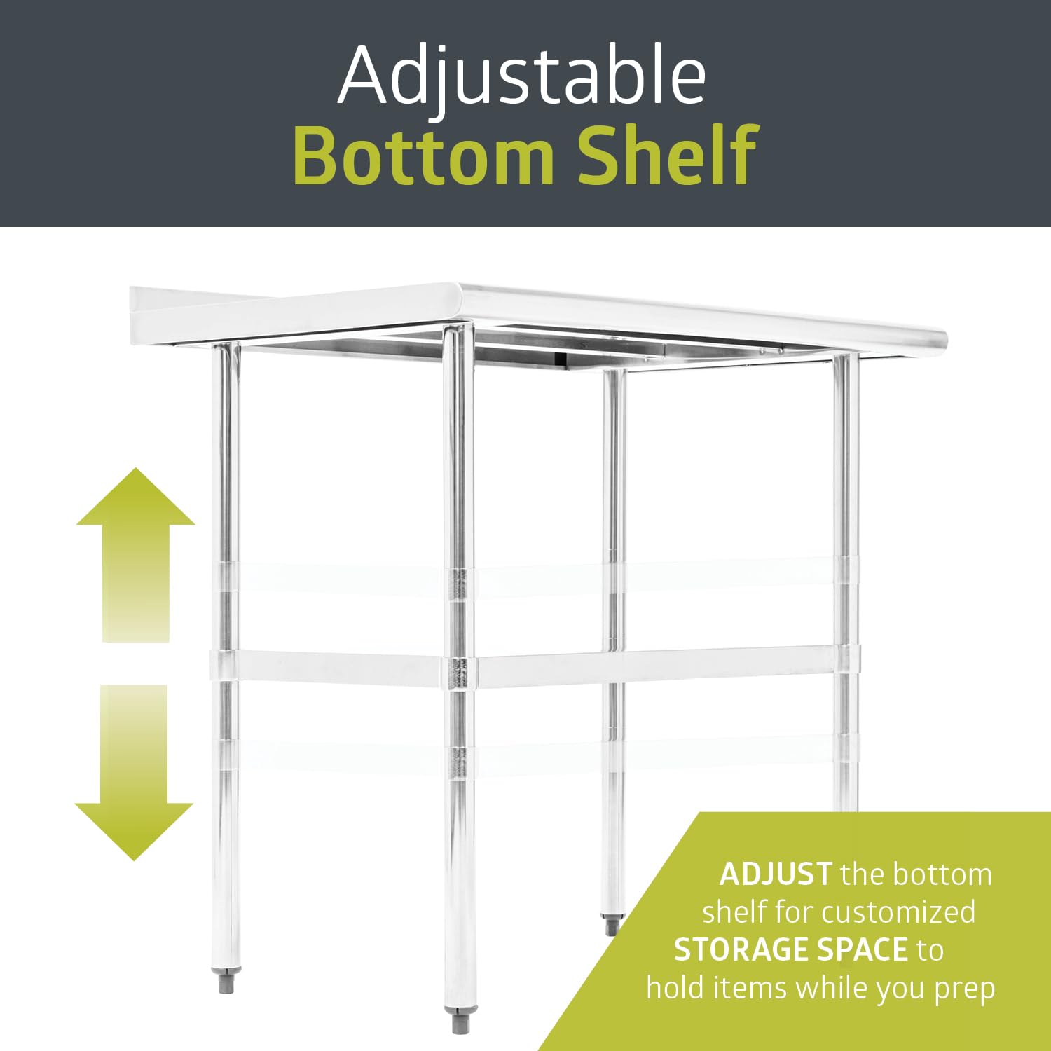 - PROFESSIONAL-STYLE DESIGN: Heavy-duty top provides the sturdy work surface your kitchen needs, while the adjustable bottom shelf supports additional tools and supplies for convenient customized storage space