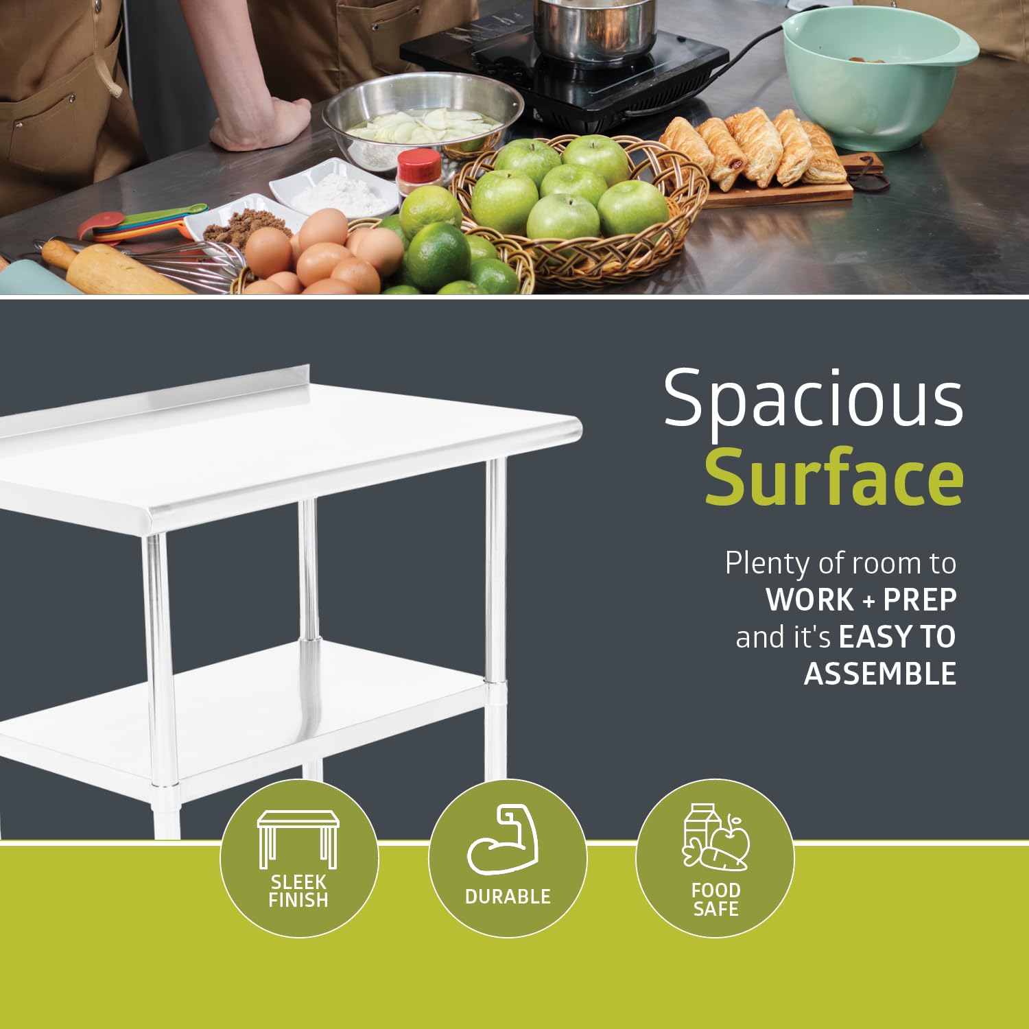 - HEAVY-DUTY PREP TABLE: Offers the perfect work surface for food prep, storage, or display in kitchens, bars, and restaurants, and it's also great for hotels, schools, hospitals, laundry rooms, and commercial settings