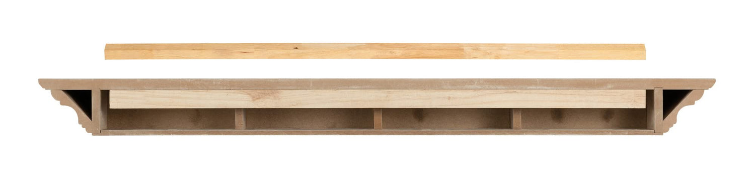 Details: There's nothing as warm and welcoming as a crackling fire in an open fireplace. The dancing flames can lift your spirits and melt away the most stressful day in a matter of minutes. But to truly be part of the home, a fireplace must warm our hearts even when there is no fire in the grate. Pearl does not treat the mantel as trim or molding but as a beautiful piece of furniture that is the focal point of the entire room, the emotional core. It represents roots, heritage and tradition. Furniture is arranged around it, precious treasures are displayed on it, and it provides balance and stability to the entire room. Pearl Mantels features fine furniture quality, stunning details and classic designs that will enhance any decor. Clean and simple, yet elegant, this shelf blends with any decor. Created from Grade A medium density fiberboard also known as MDF which is very commonly used for furniture, cabinetry, shelving and decorative moldings. The shelf ships in 1 piece. Mitered hanger board assembly included for easy installation. Shelf Length: 60" Shelf Depth: 10" Bottom Base Length: 51" Bottom Base Depth: 4 5/8" Overall Height: 5" Weight 32 pounds. Look for the pearl inlay that graces the right hand side of the shelf as proof that you have received an authentic Pearl Mantel. Paint grade only. Arrives painted and ready to install.