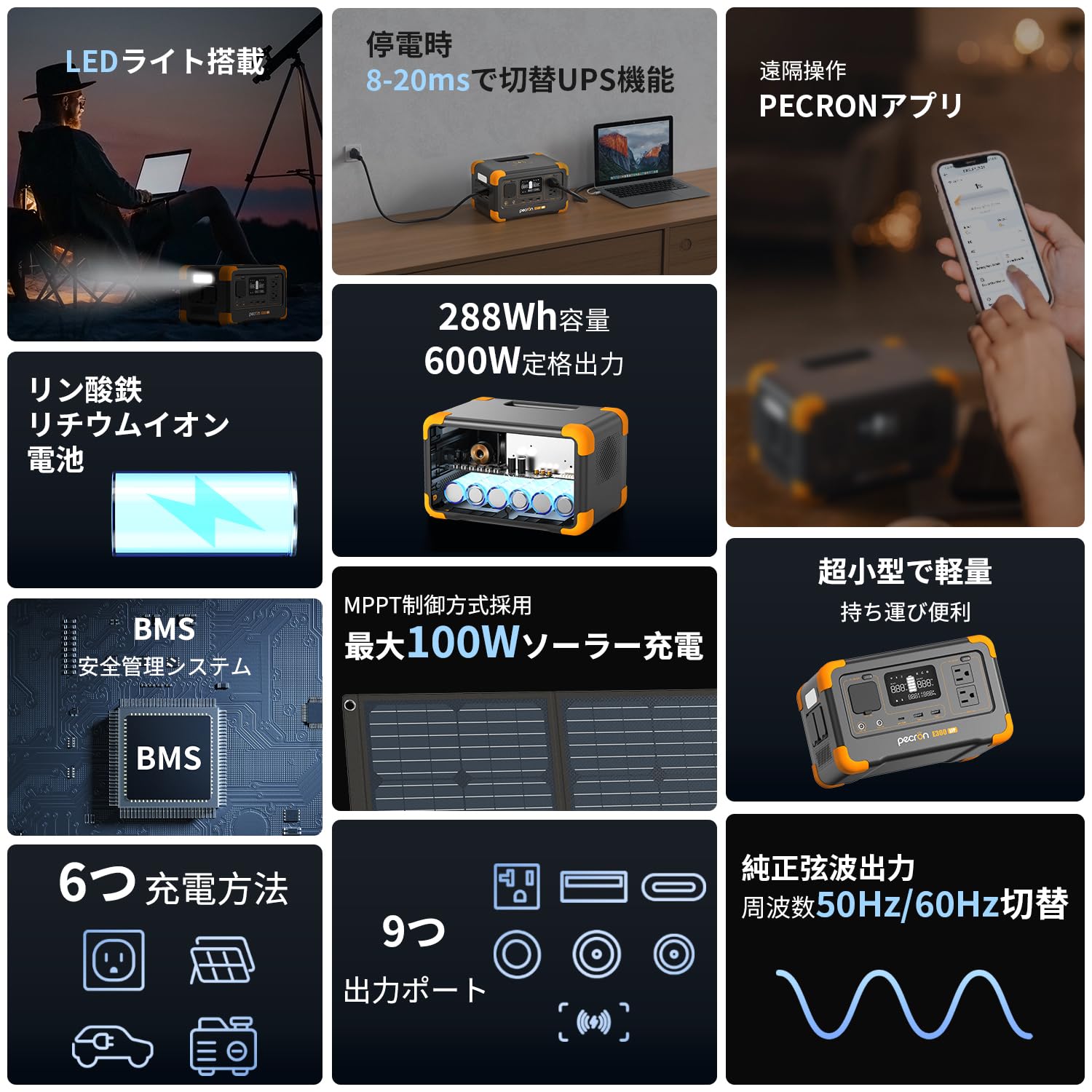 pecron Portable Power Station E300LFP, 288Wh Solar Generator, 2 Up to 600W AC Outlets Power Station, LiFePO4 Battery Fast Charging, Solar Power Station for Home Use, RV, Camping(Solar Panel Optional)