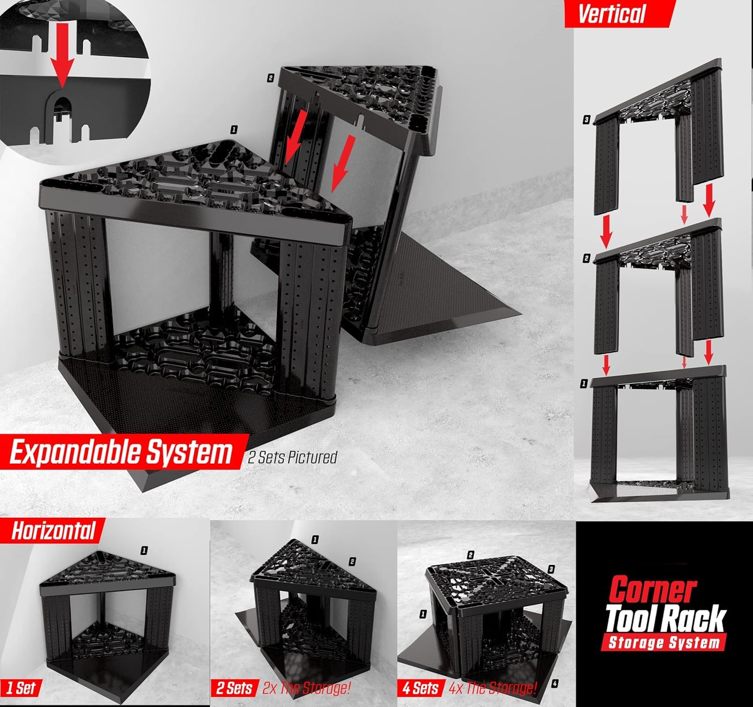 - UNIQUE PEG BOARD FEATURE -- Corner Tool Racks are great for large tools, but what about your smaller tools? PeerBasics's patent-pending design utilizes even more space. Allowing you to hang up to 40 smaller tools on the front of the rack! Customize the layout to your liking.